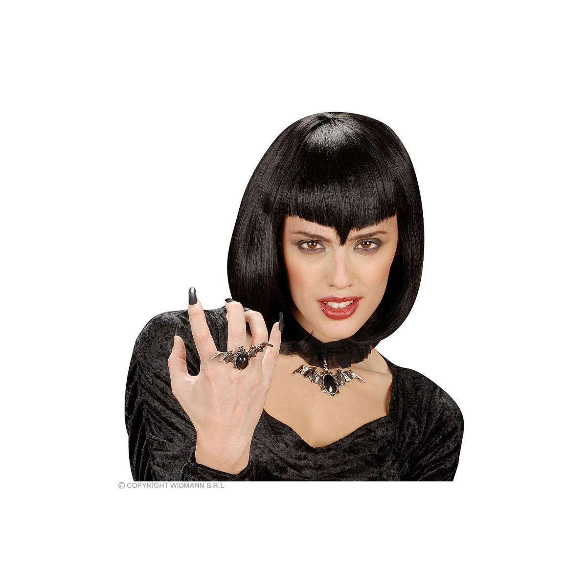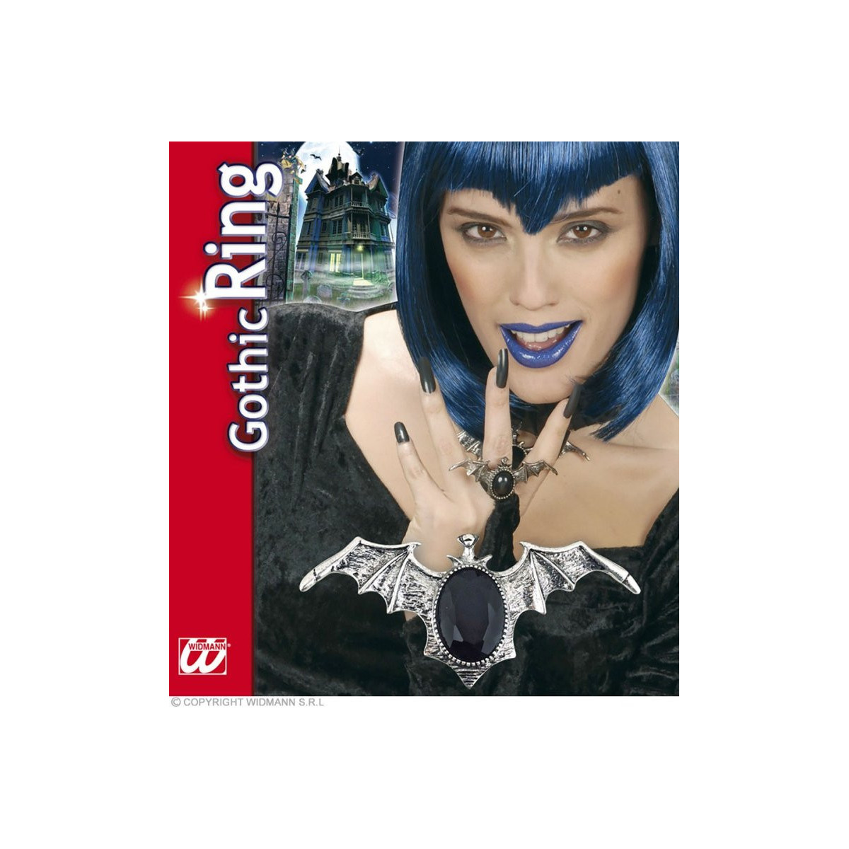 ANELLO PIPISTRELLO GOTICO CON GEMMA NERA