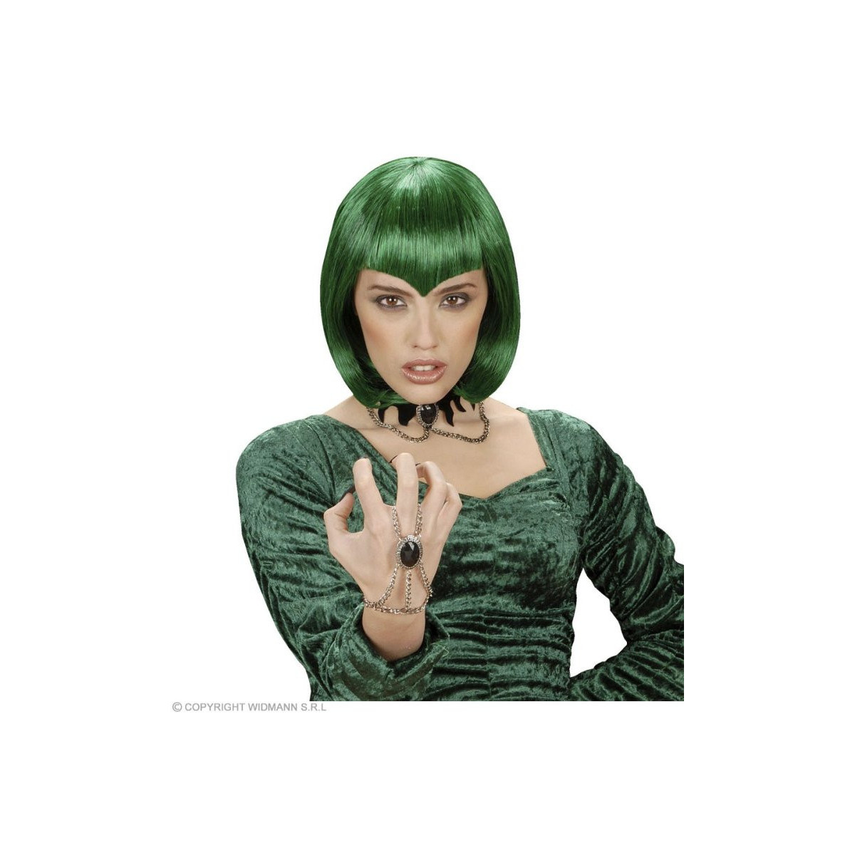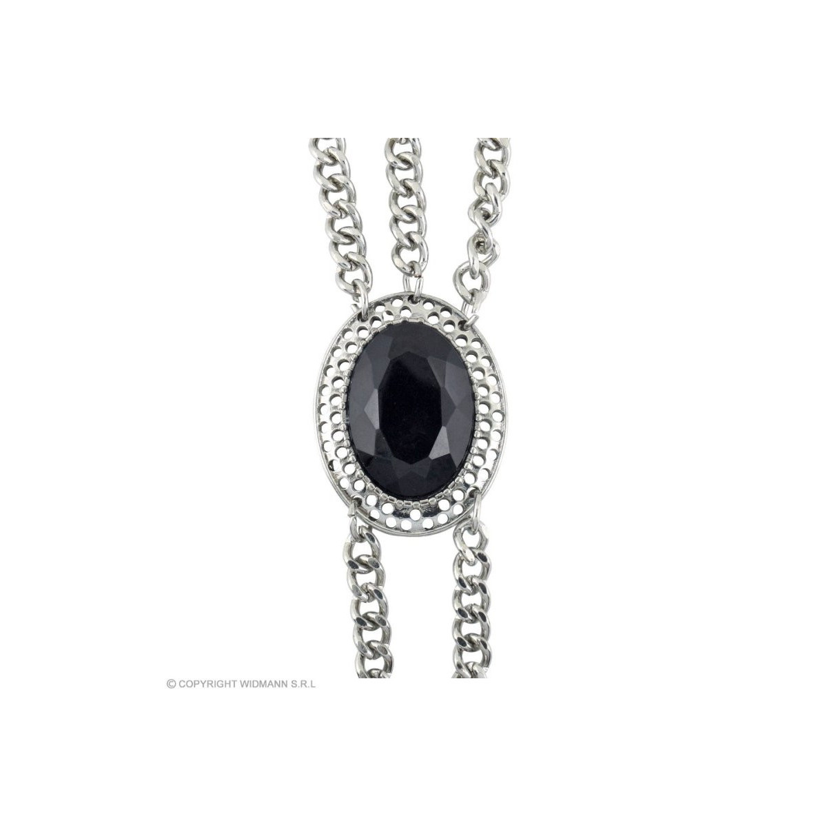 CATENA PER POLSO GOTICA CON MEDAGLIONE GEMMA NERA