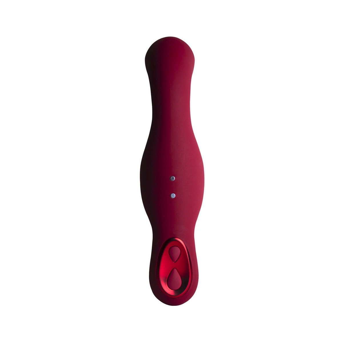 Il Ruby Glow Blush di Rocks-Off combina un vibratore da seduti e un vibratore per il punto G in un unico potente giocattolo. 2 motori silenziosi e controllabili separatamente - uno nella parte superiore e uno nel rigonfiamento centrale - forniscono ciascuno 10 modalità di vibrazione e possono essere comodamente combinati direttamente sul toy o con il pratico telecomando - anche dal partner. La portata è di 15 metri.