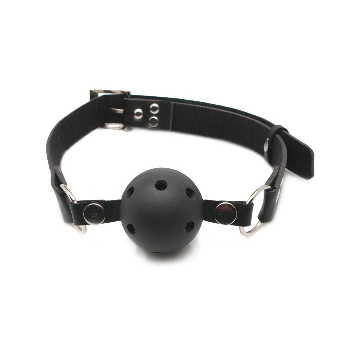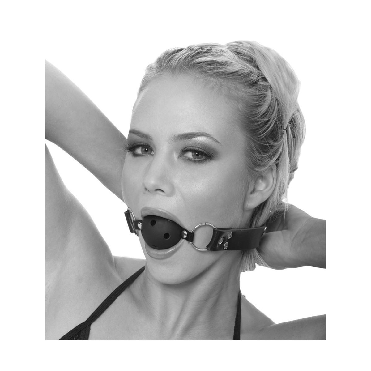 Per i giochi di lussuria e di sottomissione questa gag è proprio l'utensile giusto. La palla bavaglio resistente al morso ha fori di respirazione e fornisce momenti di lussuria silenziosi con sufficiente apporto d'aria. Il cinturino in similpelle è regolabile per ogni dimensione della testa con la chiusura a fibbia.