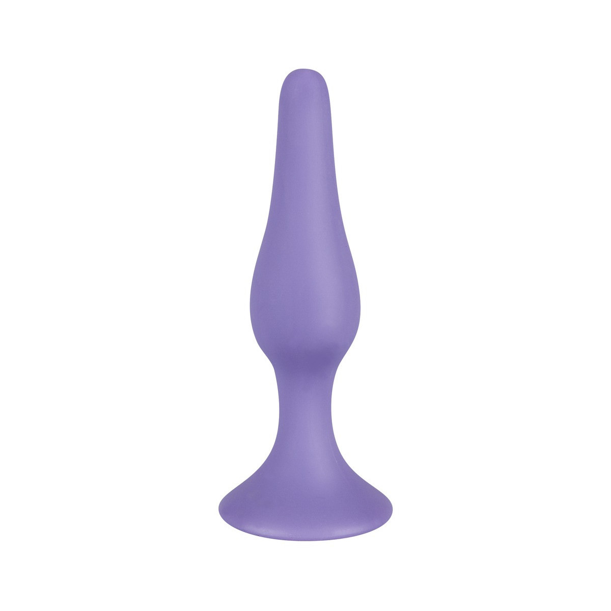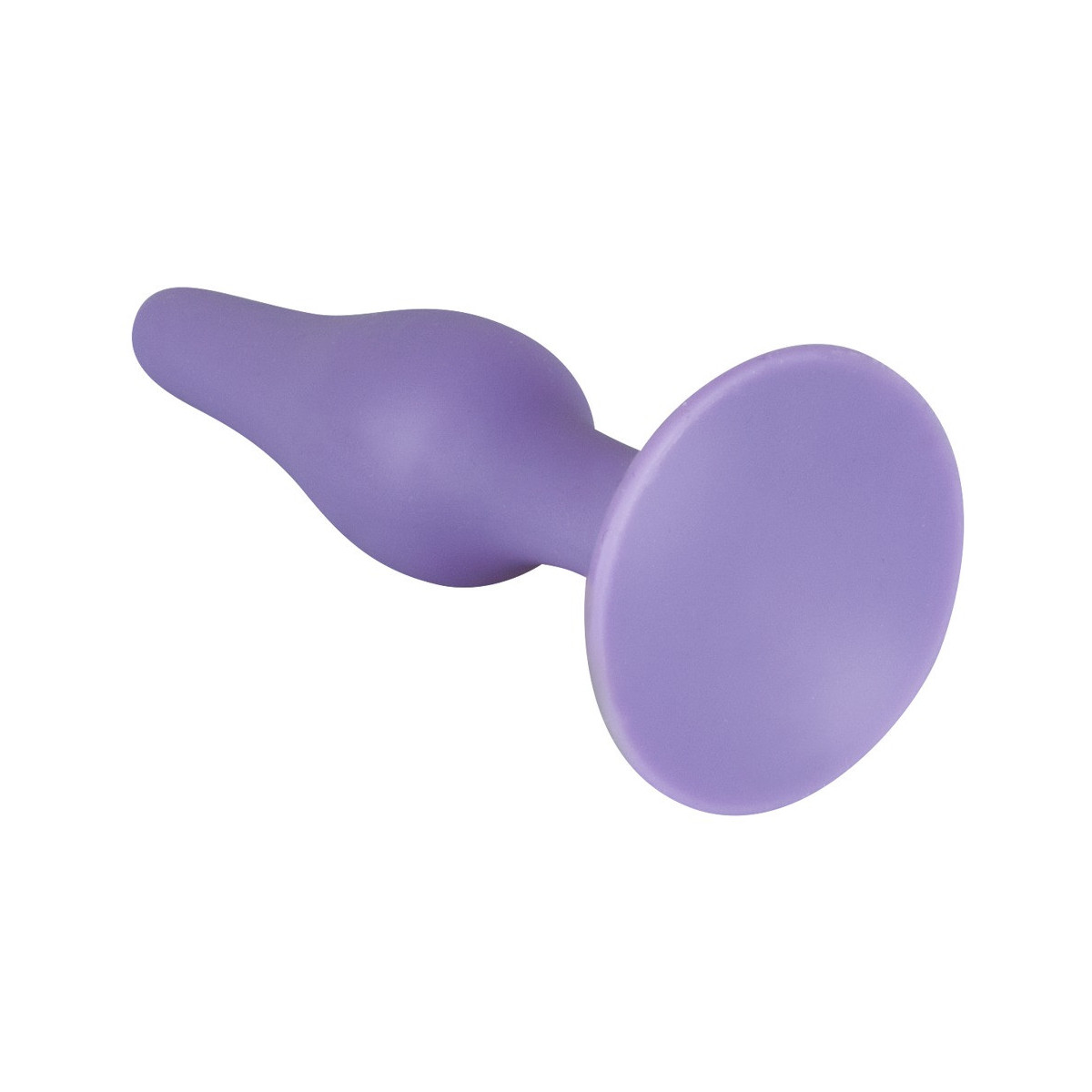 Plug anale in silicone viola con base di aspirazione. Sentite che vi penetra con la sua punta stretta e vi eccita estaticamente con il suo fusto più spesso. 10,5 cm di lunghezza totale, profondità di inserimento ca. 9 cm. Ø 1-2,5 cm. Materiale: silicone.