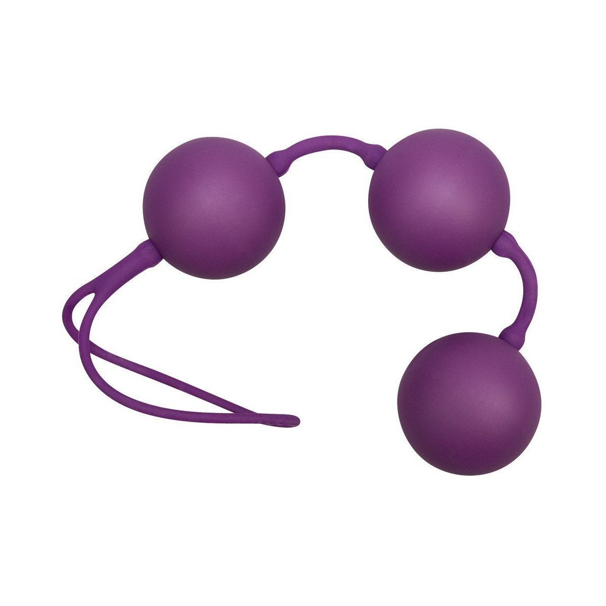 Trio di palle d'amore color porpora con interno vibroball oscillante e anello di ritorno. Adatto per l'allenamento avanzato dei muscoli del pavimento pelvico.