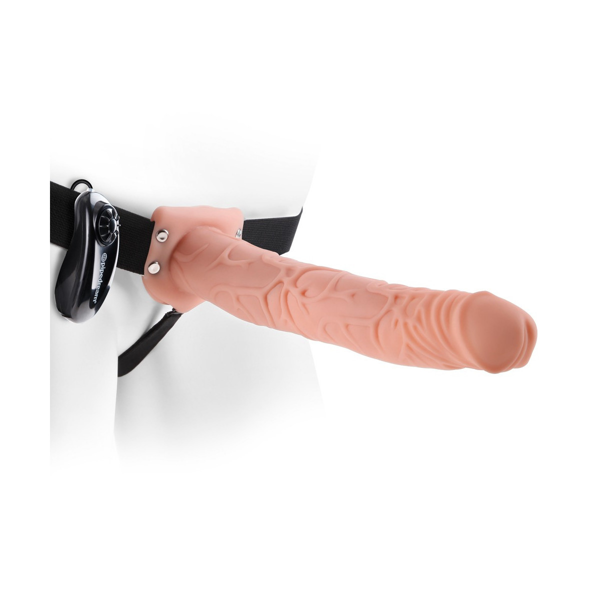 Rendi LEI o LUI rigidi e pronti in ogni momento con questo vibratore strap-on, perché dà a chi lo indossa dimensioni incredibili e al ricevente una stimolazione eccitante in una classe a parte. Il vibratore sembra proprio come uno vero, perché è fedele alla realtà e persino ottimizzato con la sua lunghezza, il glande sporgente e le venature pronunciate. E la cosa migliore è che questo magnifico ragazzo vibra anche! Per un piacere speciale, la vibrazione è regolabile all'infinito e può essere controllata con il telecomando. In questo modo LUI può coccolarla ancora più intensamente, perché il vibratore è cavo all'interno, così LUI può inserire senza sforzo il suo pene. Oppure puoi provare nuove varianti di fare l'amore soddisfacendo LEI da dietro, ma anche LEI e LEI si divertiranno molto con questo lecca-lecca. Per garantire che tutto sia saldamente al suo posto, il vibratore strap-on ha un cinturino nero che è regolabile in lunghezza e può quindi essere indossato sia da LUI che da LEI. La maschera nera per gli occhi inclusa è un extra speciale che può essere usato per intensificare ancora di più il fare l'amore.