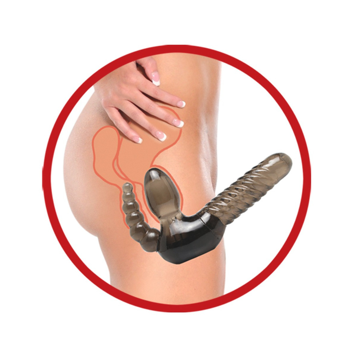 Giocattolo ingegnoso per giochi di ruolo in cui la parte attiva è stimolata tanto quanto la parte passiva. LEI si presenta al tappo vaginale e anale e può quindi godersi il dildo.