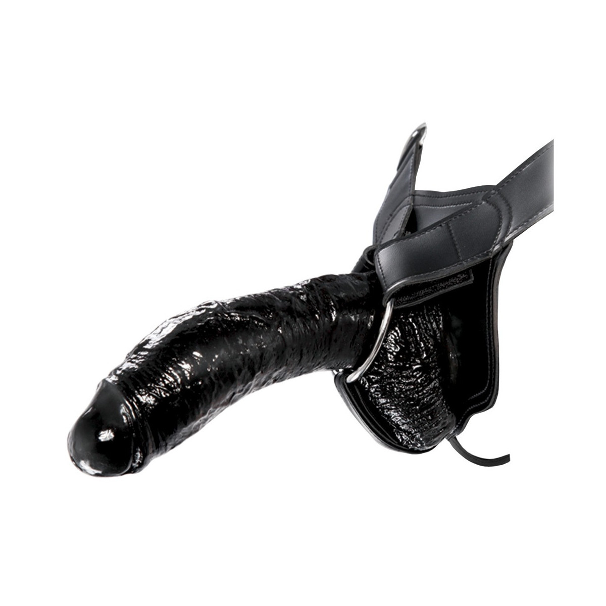 Dildo naturale cavo con testicoli sporgenti e cinturino elastico. Indossato sul pene per più lunghezza e circonferenza o per l'ancoraggio del sesso bollente. Cinturino regolabile.
