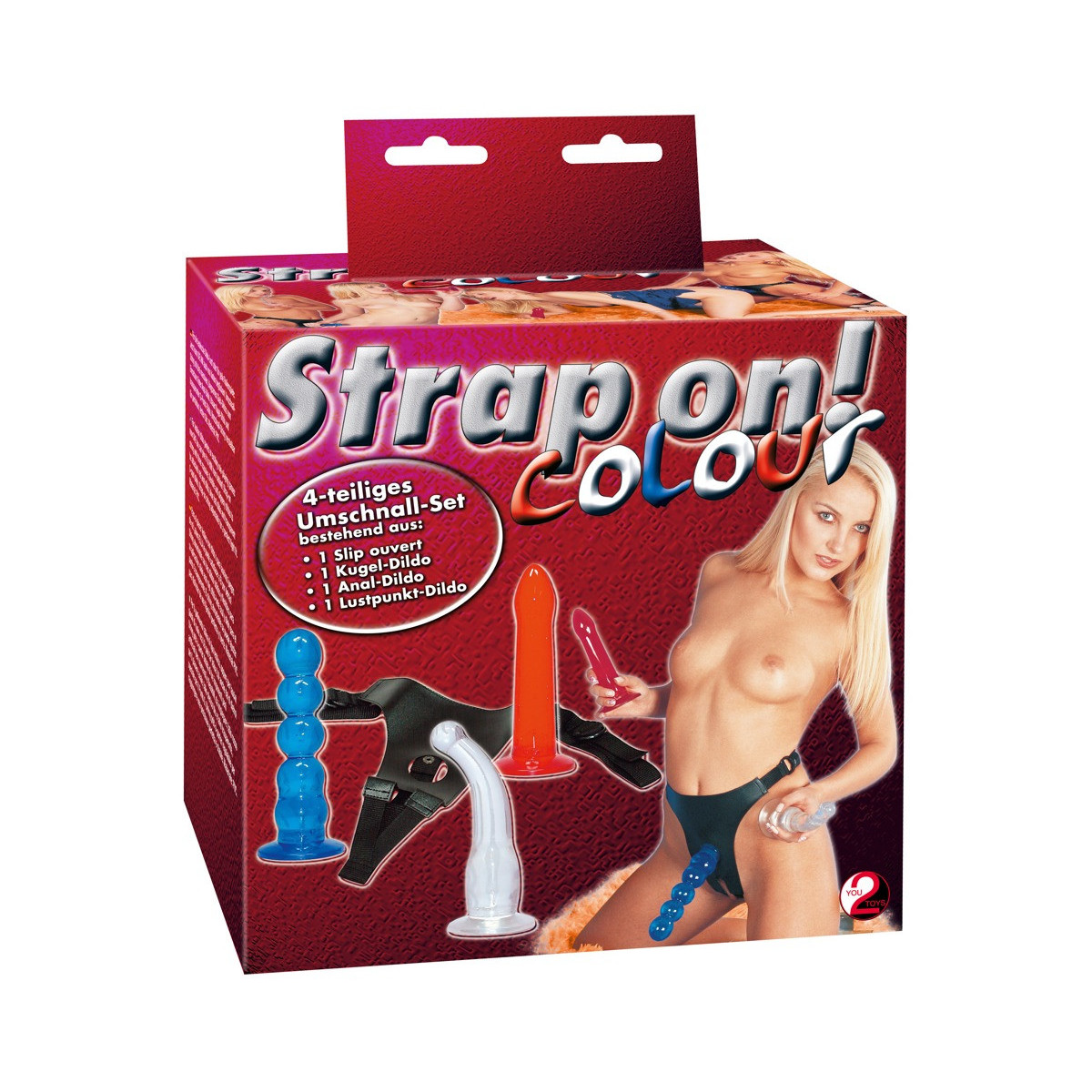 Con questo set allacciabile siete perfettamente attrezzate per giochi di ruolo di qualsiasi tipo! String allacciabile regolabile più tre diversi dildo massicci da inserire. Dildo rosso ca. 19 cm di lunghezza, Ø 3 cm. Dildo per punto G trasparente ca. 19 cm di lunghezza, Ø 2-4,5 cm. Dildo sferico blu ca. 20 cm di lunghezza, Ø 2,5-4 cm. Materiale: PVC. Incluso campioncino di lubrificante.