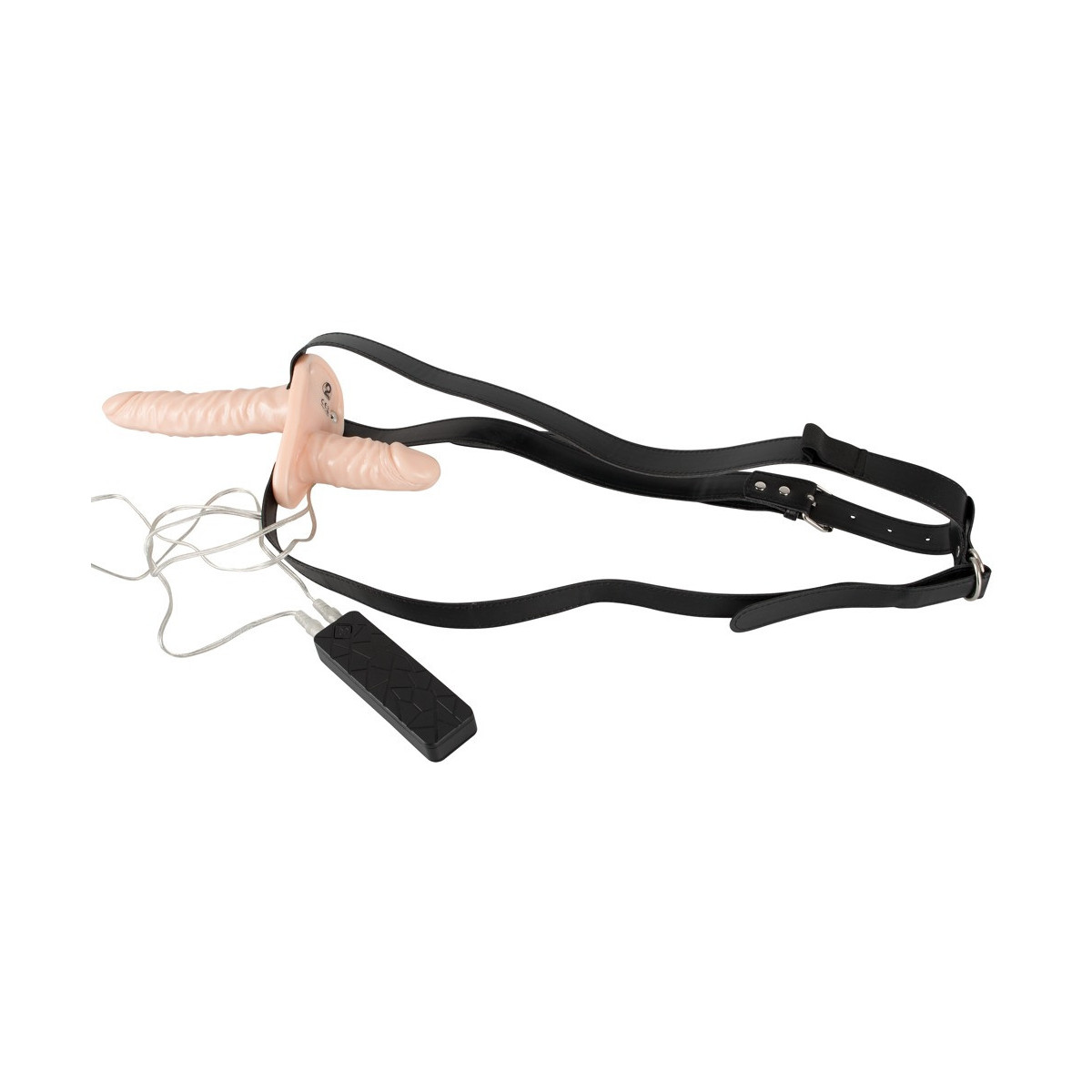 Qui nessuno resta a mani vuote! Inserite personalmente il piccolo o grande vibratore, allacciatelo ai fianchi e arrapate il vostro partner con l’altro vibratore! Color pelle con cinghia di pelle sintetica removibile. Piccolo vibratore: ca. 10 cm di lunghezza, Ø 3,5 cm. Vibratore grande: ca. 15 cm di lunghezza, Ø 3,5 cm. Entrambi con elemento di comando a regolazione continua separata. Materiale: lattice (prodotto utilizzando lattice di caucciù naturale che può causare allergie), ABS.