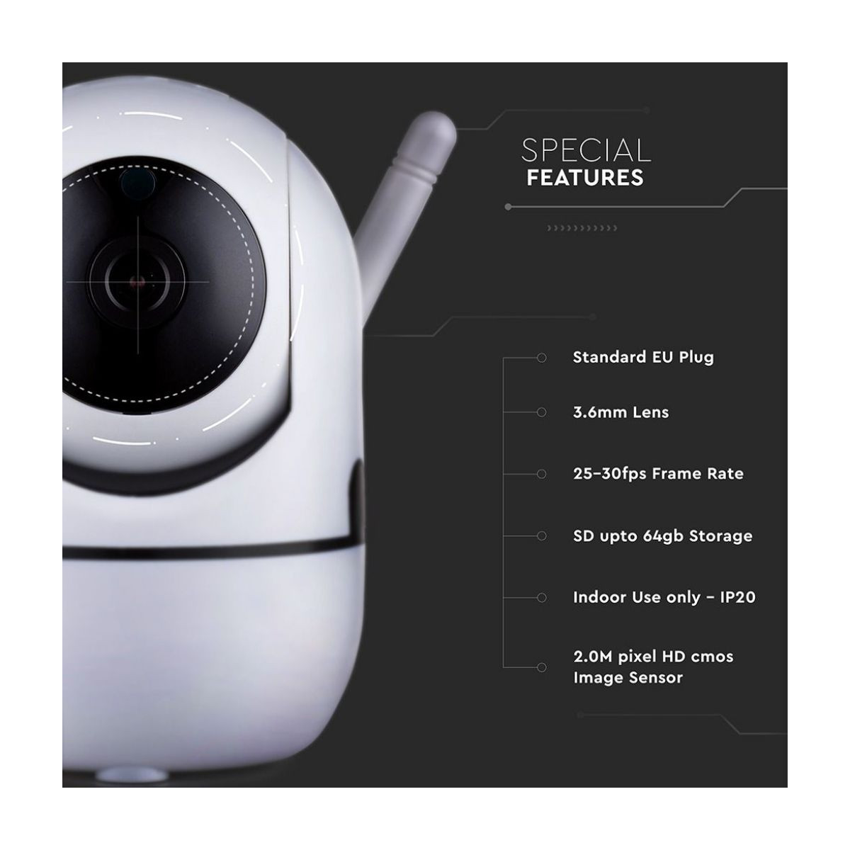 1080P IP Indoor Camera With EU Power Plug & Auto Track Function