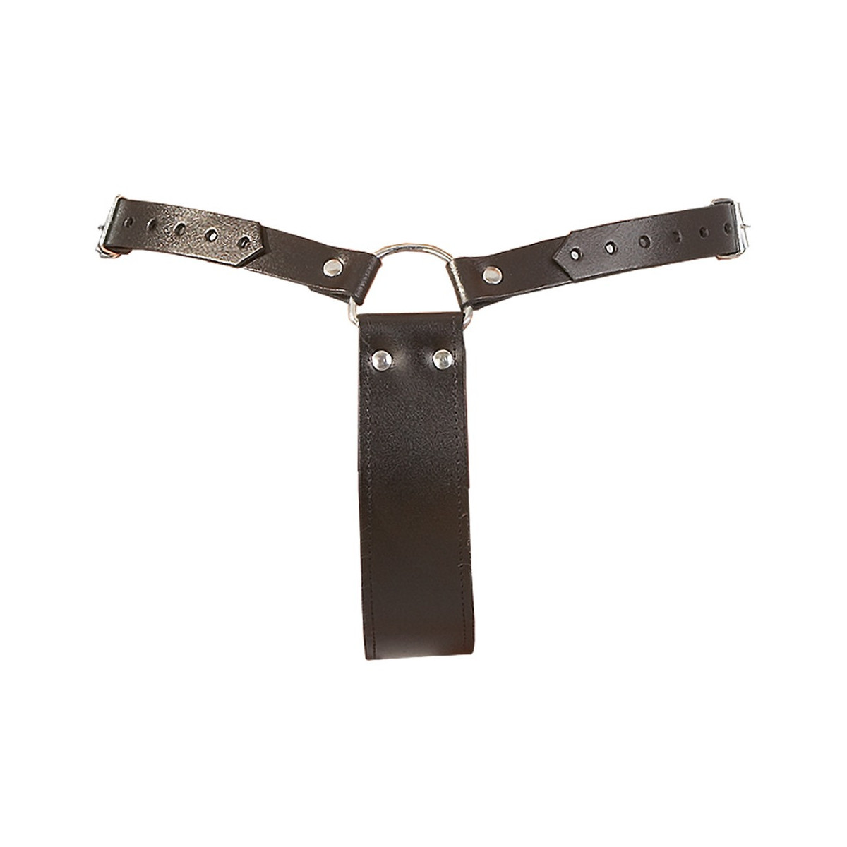 Slip di pelle crosta regolabile con pene di lattice fisso nel look naturale (15 cm di lunghezza, Ø 3,5 cm) - non removibile. Nero. Il fallo è prodotto utilizzando lattice di caucciù naturale che può causare allergie.