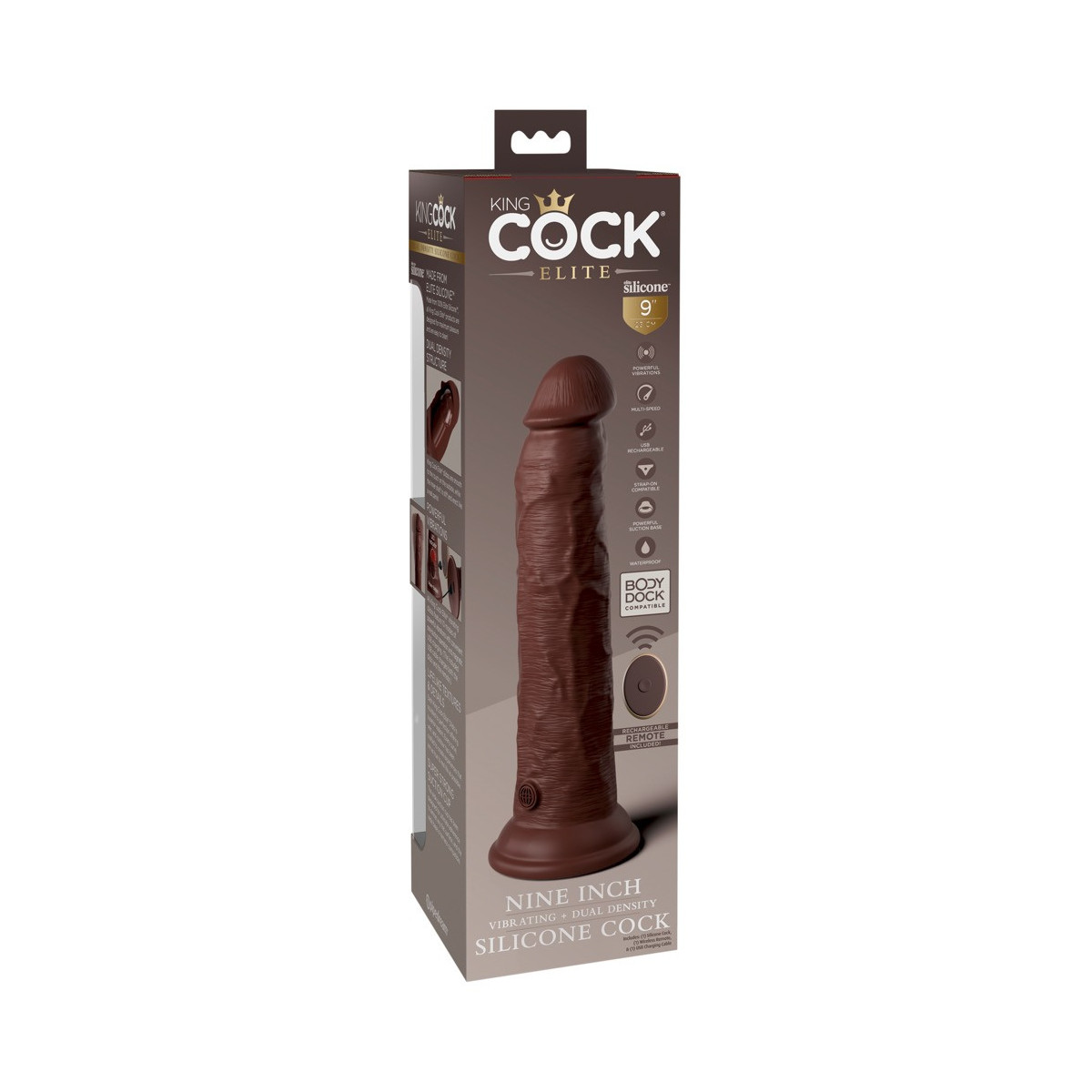 Vibratore naturale ricaricabile 9" vibrante + Dual Density Silicone Cock con telecomando da King Cock Elite in look iper-realistico pene fatto di materiale in silicone a doppia densità che si sente come la pelle reale. Il vibratore stesso (come un vero membro eretto) ha un'asta ferma ma flessibile che rende l'esperienza di piacere il più realistica possibile.
