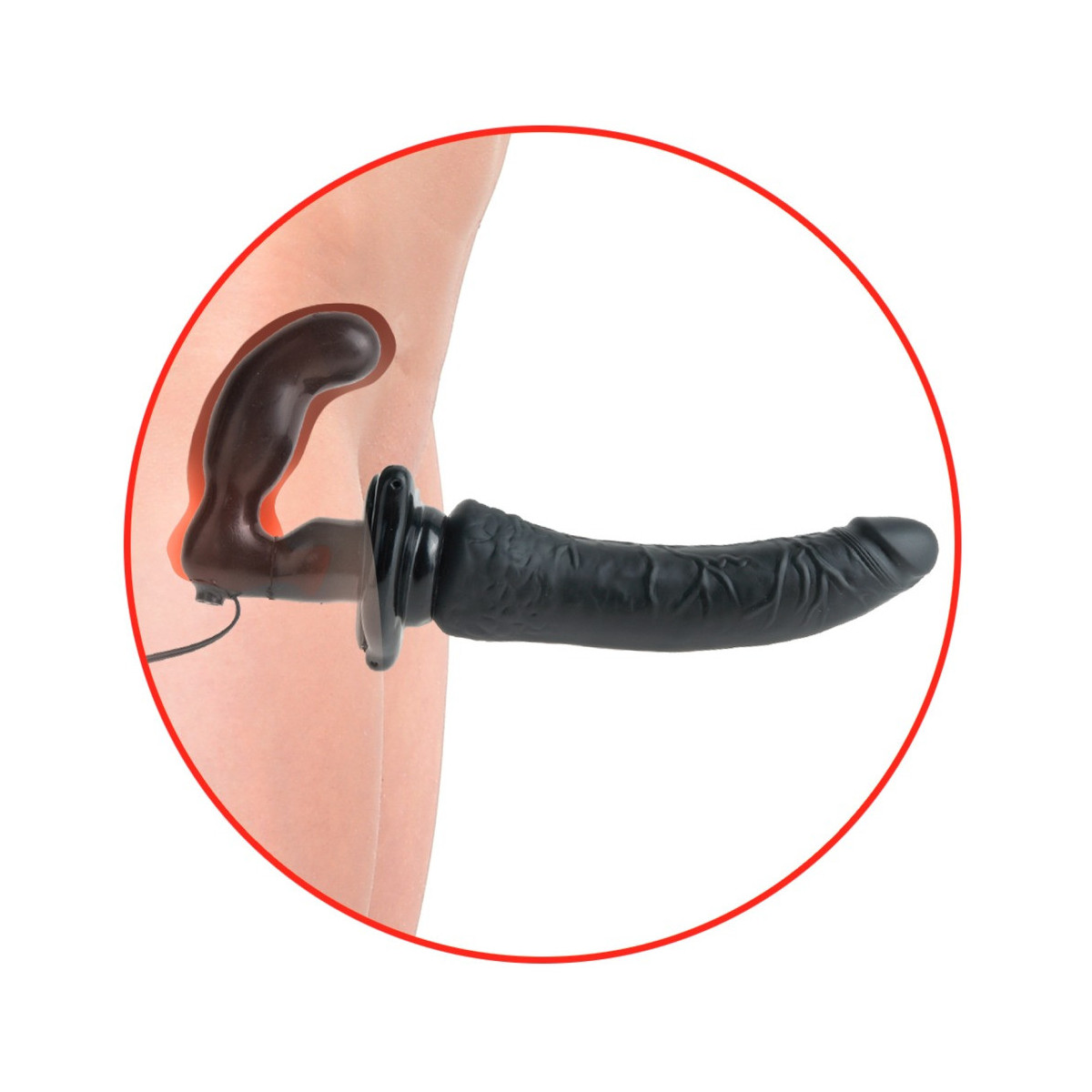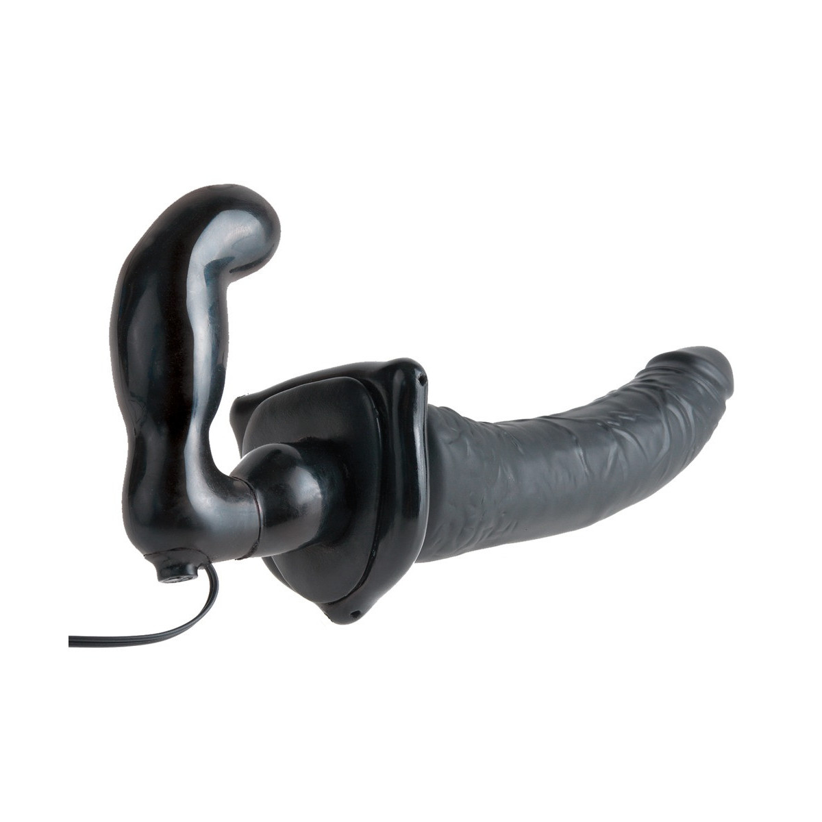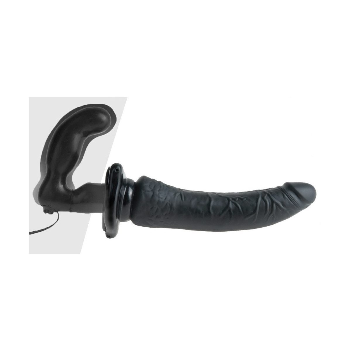 Elastico strap-on con doppio dildo realistico. La spina rovina la parte attiva con la vibrazione a più velocità. L'operazione è molto confortevole grazie al funzionamento via cavo. Si prega di ordinare le batterie separatamente: 2 x AA.