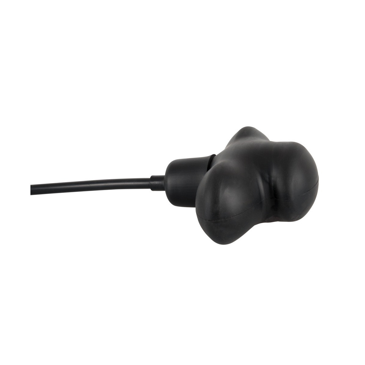 Bavaglio gonfiabile con pompa a sfera. Grande circa 12 x 5,5 cm. Nero. Materiale del bavaglio: silicone. Materiale pompa a sfera: Lattice, prodotto con lattice di gomma naturale, che può causare allergie.