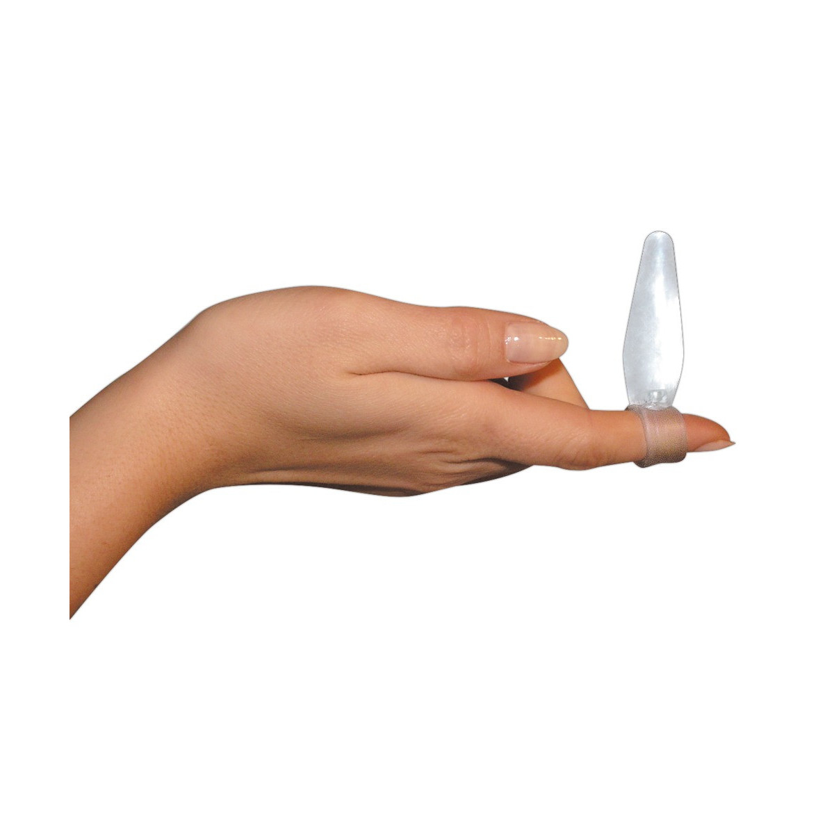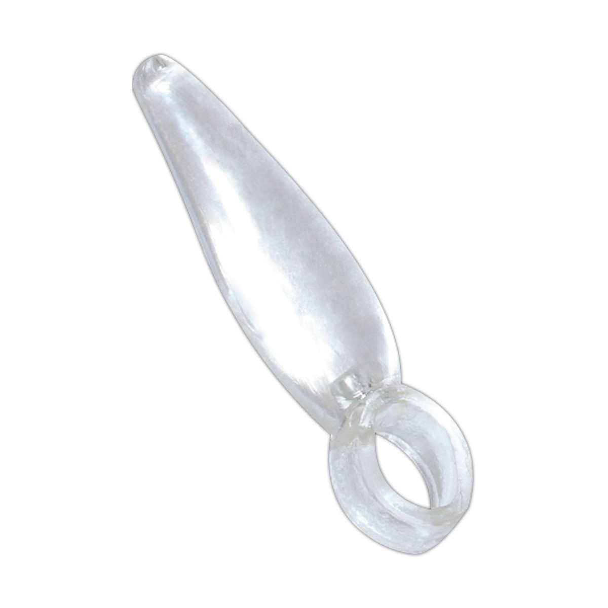 Anello per dito (Ø 1,5 cm, espandibile) con tappo anale. Ca. 5 cm di lunghezza, Ø 0,5-1,5 cm. Trasparente. Materiale: TPE.