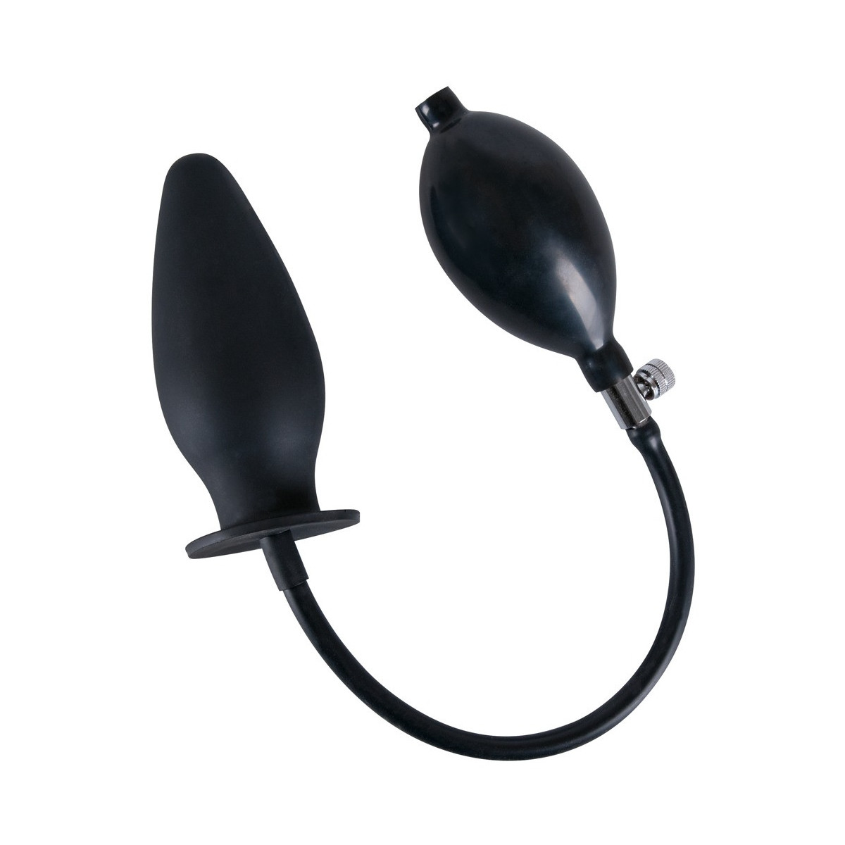 Questo tappo anale nero può essere pompato con la pratica pompa a sfera con valvola di rilascio: premete contro la prostata per eccitarvi e contro la vescica per stimolare l'orgasmo. 11,5 cm di lunghezza, Ø da 2 a 4,5 cm - gonfiabile - si allarga fino a 9 cm di diametro! Materiale: silicone.