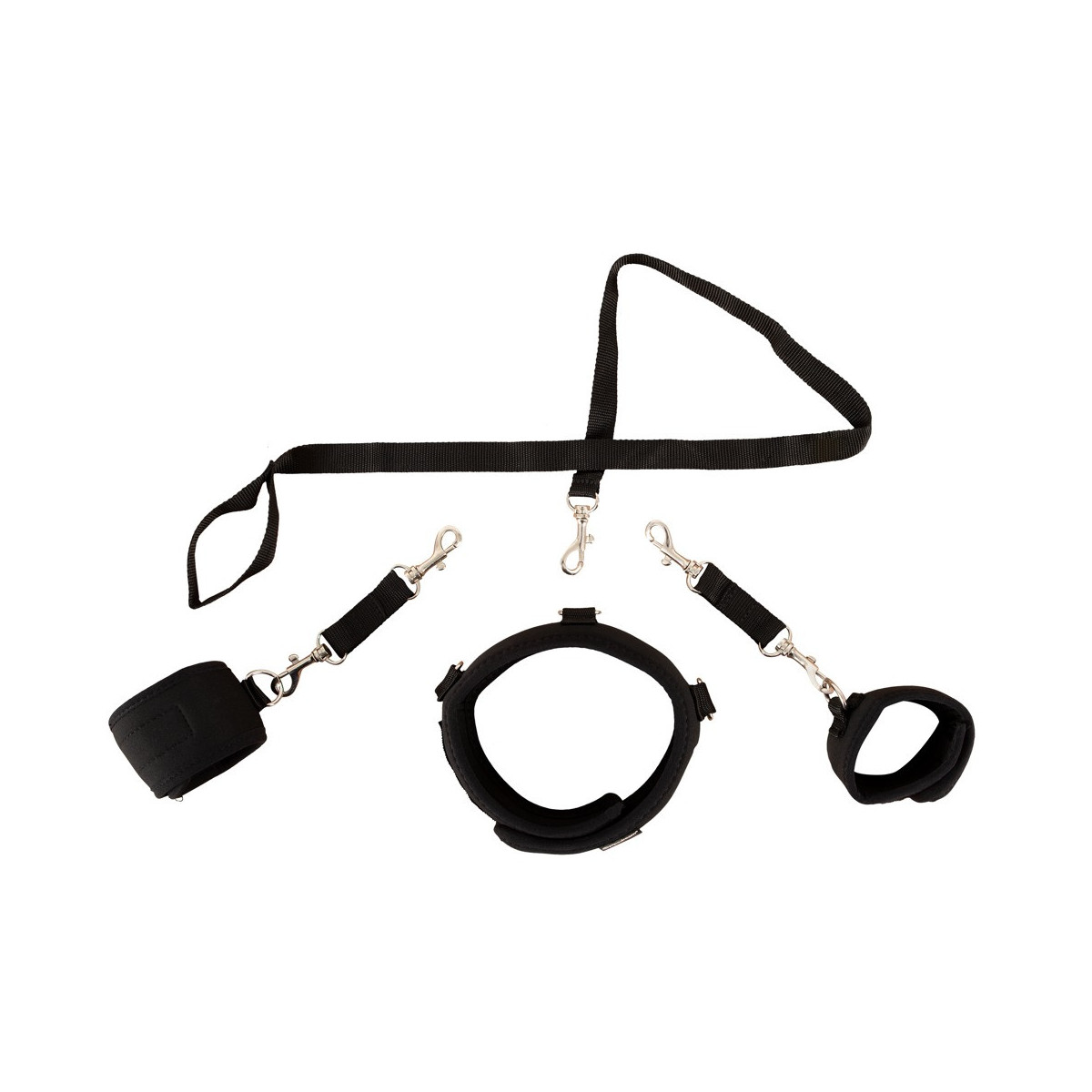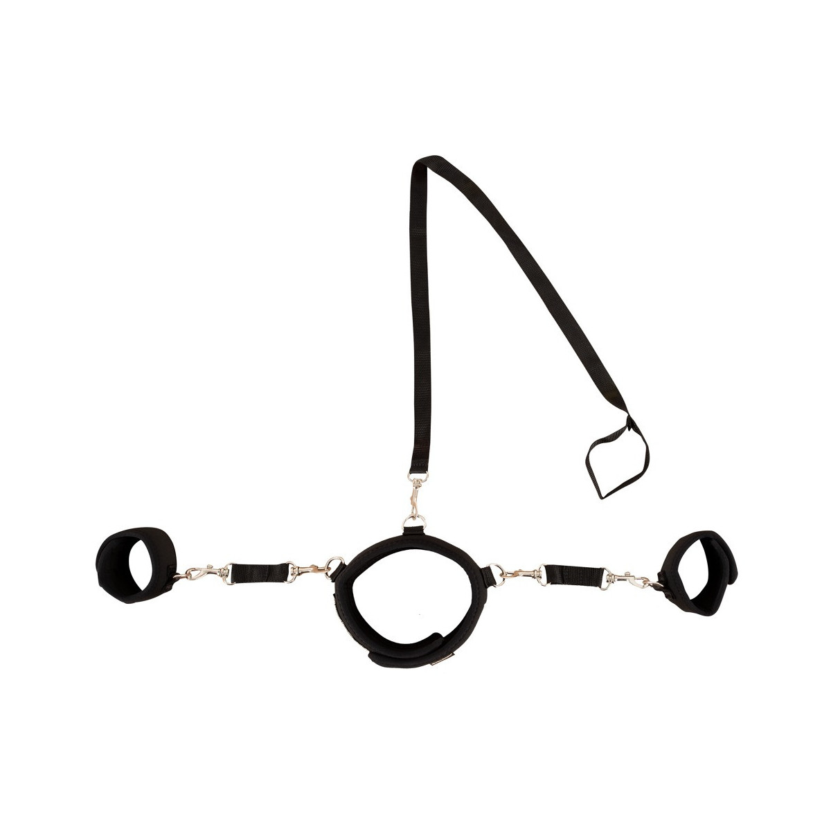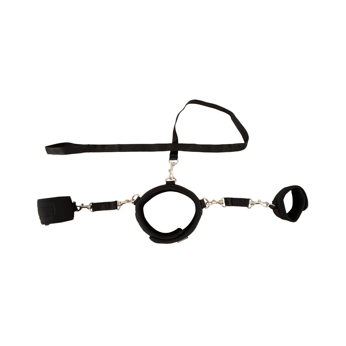 Con questo collare i sogni fetish caldi diventano realtà. La parte sottomessa può essere dominata al collare con il guinzaglio, ma è ulteriormente limitata con le manette. Tutti gli elementi sono regolabili per un'esperienza individuale e anche imbottiti per il massimo comfort.