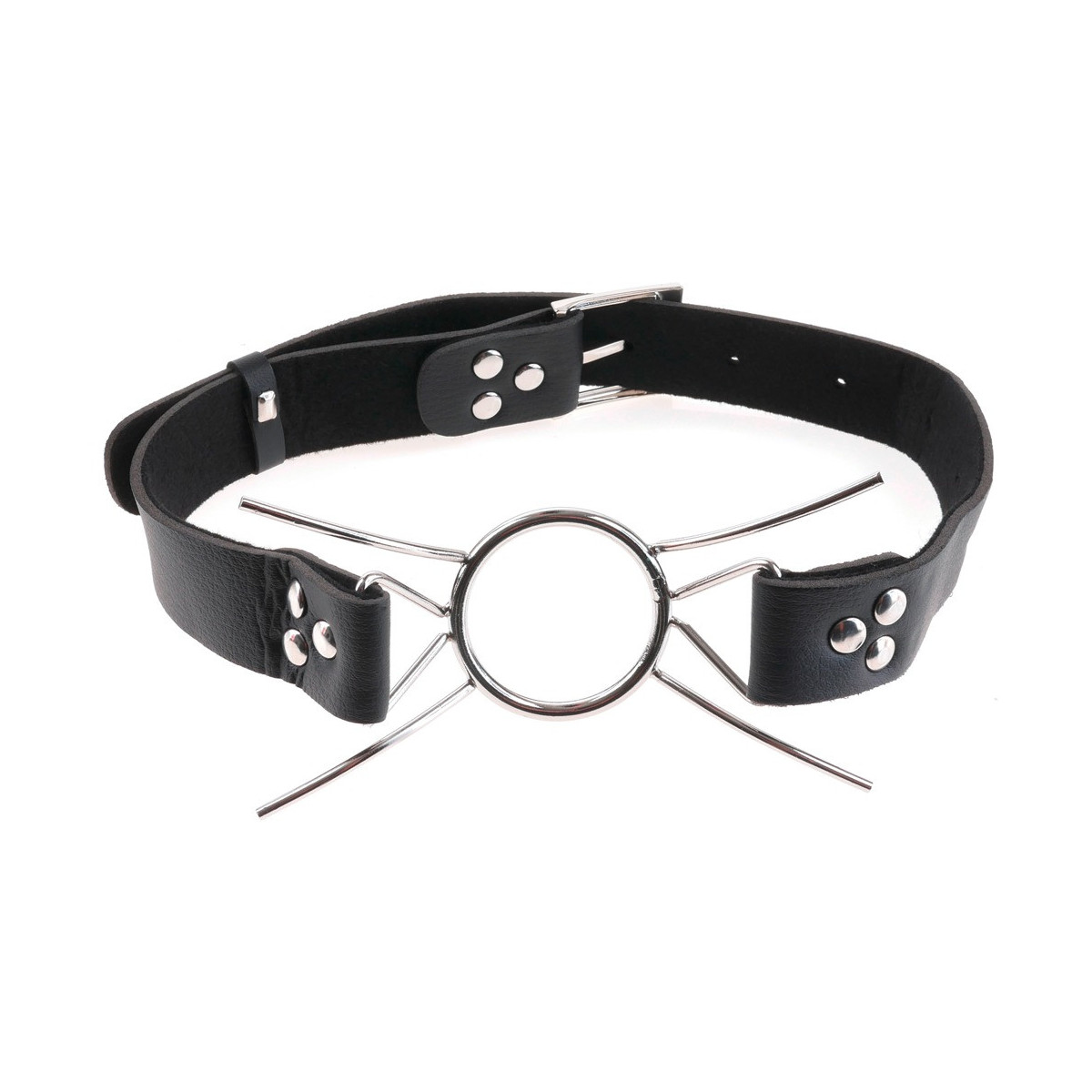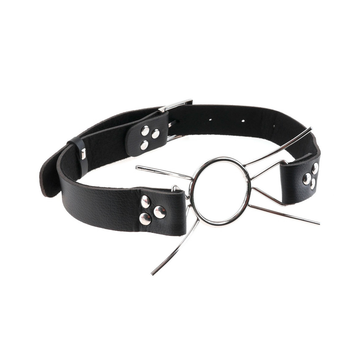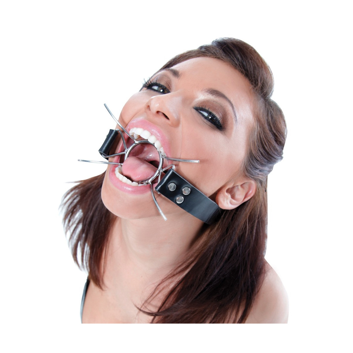 Per i giochi di lussuria e di sottomissione questa gag è proprio l'utensile giusto. L'anello e i quattro puntoni curvi in acciaio inossidabile mantengono la bocca del sottomarino permanentemente aperta. Per approfondimenti più profondi e per l'introduzione di varie cose o liquidi. Il cinturino in pelle testa è regolabile per qualsiasi dimensione della testa con la chiusura a fibbia.