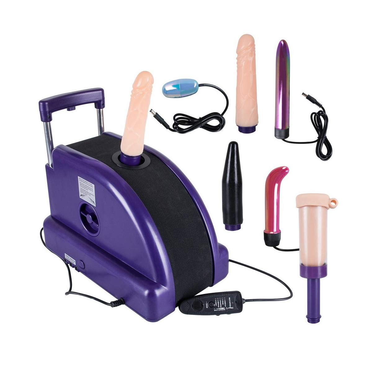 Questa macchina del sesso offre 3 diversi attacchi per dildo da avvitare con un angolo di attacco regolabile di 90° in orizzontale o in verticale. Sul lato si trova un'altra fessura per i 3 vibrogiocattoli inclusi. La macchina è alimentata e l'intensità è controllata da un'unità di controllo con un lungo cavo di collegamento. La velocità può essere regolata fino a 132 colpi al minuto e i vibro-toys possono funzionare in 5 diversi ritmi in parallelo.