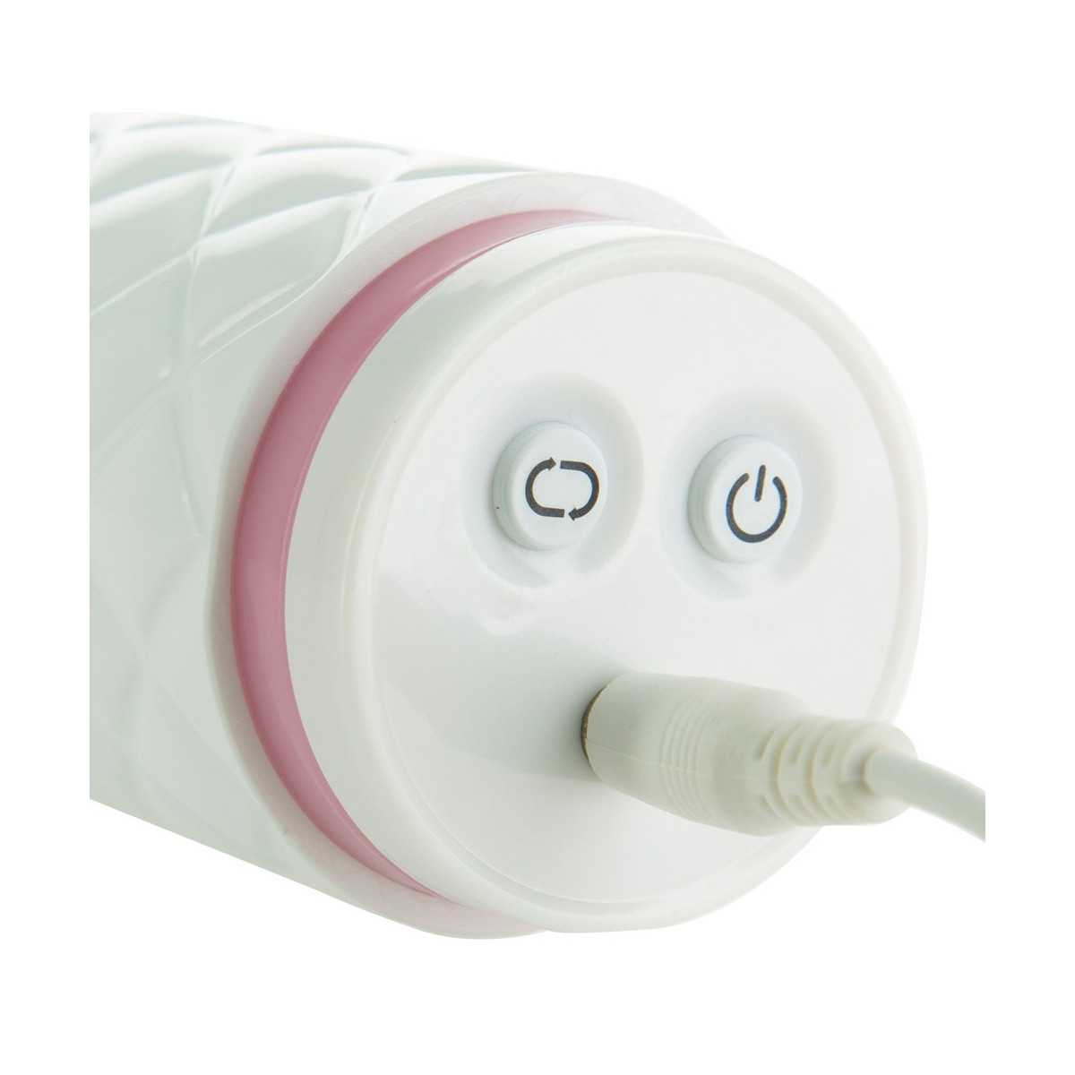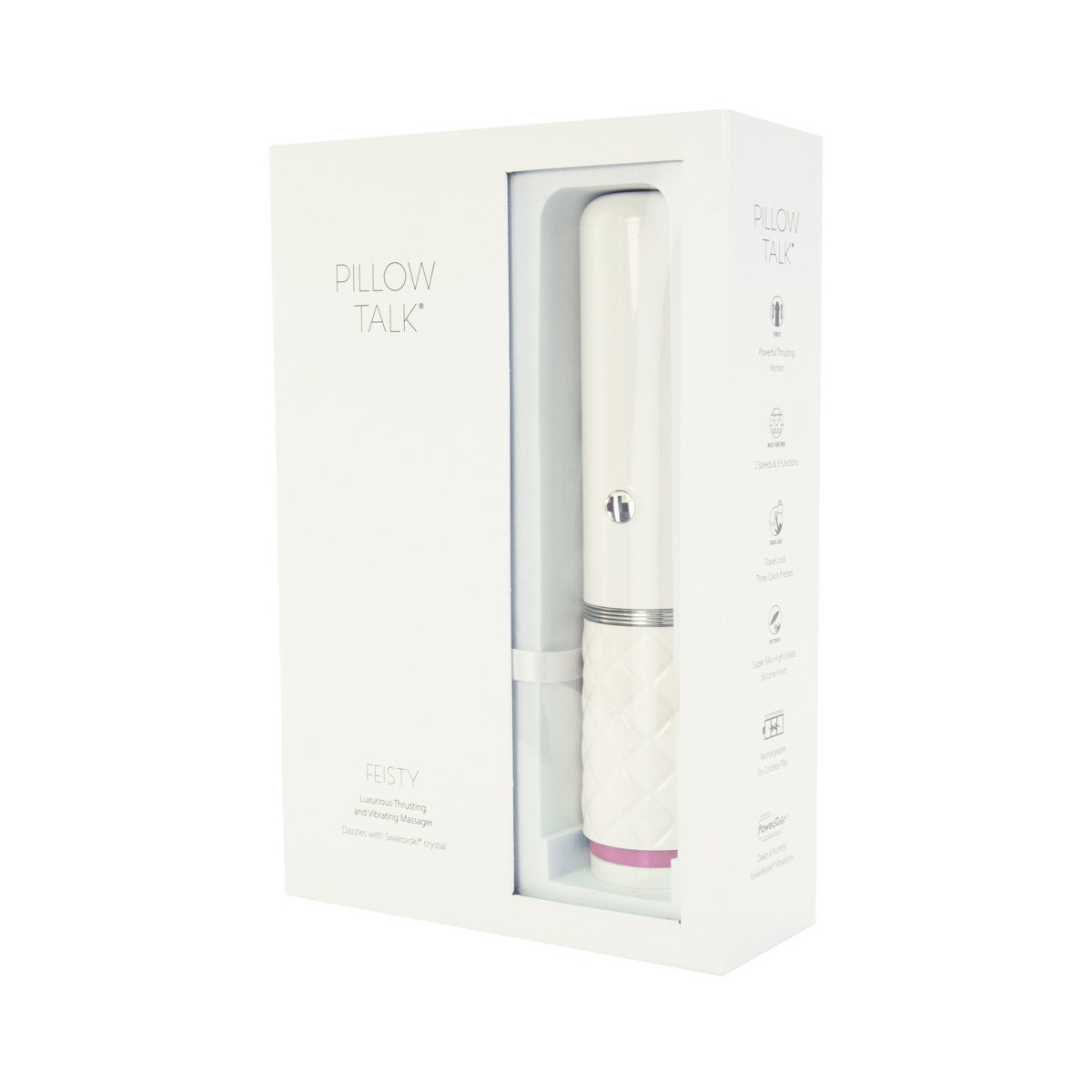 Il vibratore a doppio motore Feisty thrust di Pillow Talk, intensamente strutturato, spinge con potenza ancora e ancora e coccola con vibrazioni intense e profonde. 2 velocità di spinta e 3 funzioni dinamiche di vibrazioni e spinte sono comodamente controllabili al tocco di un pulsante sotto la comoda maniglia.