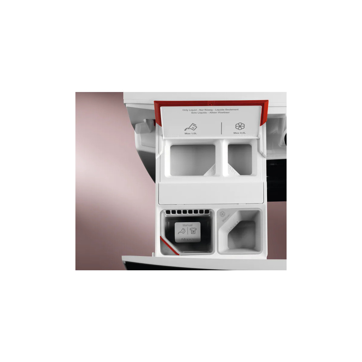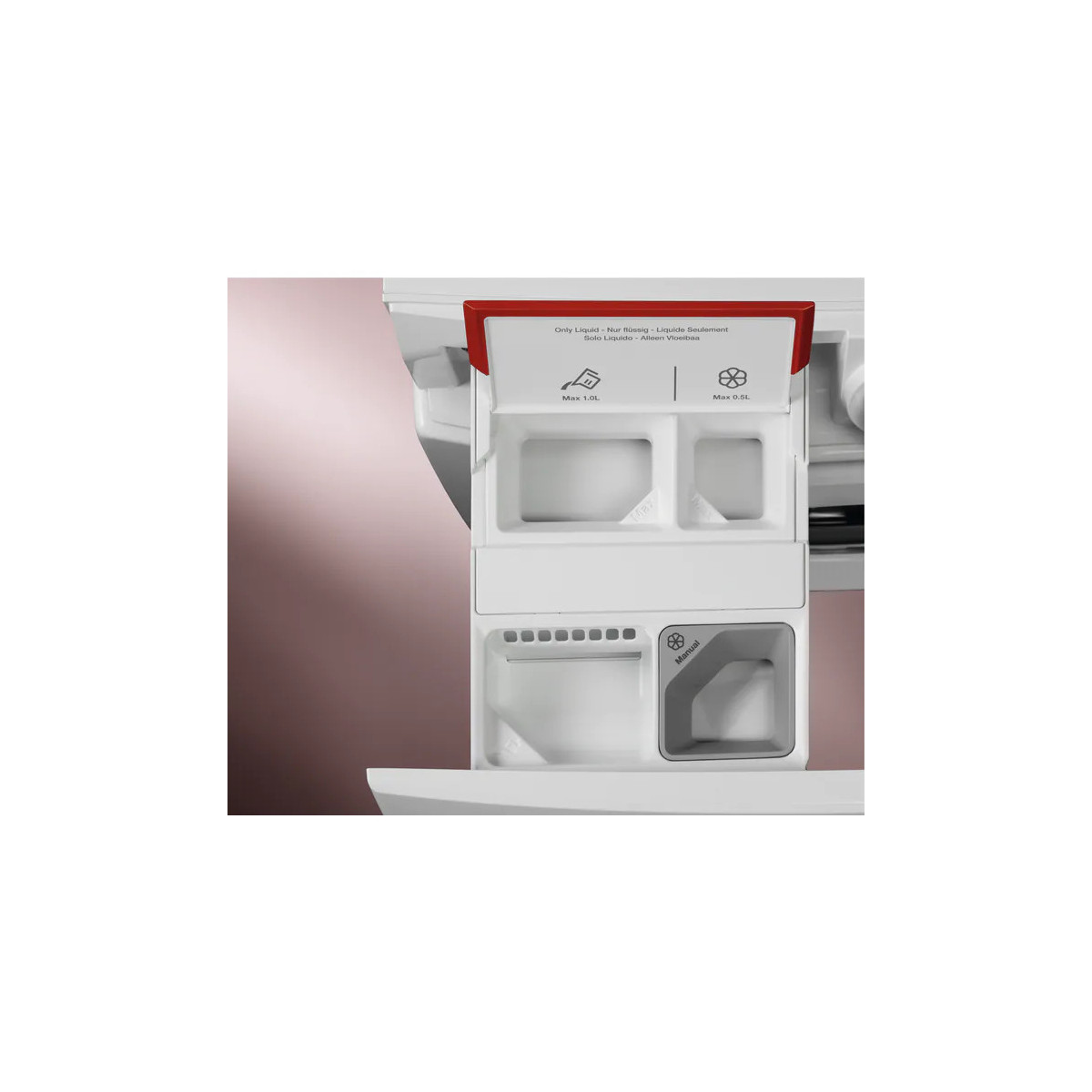 Il giusto dosaggio di detersivo e ammorbidente evitando gli sprechi. Riempi il cassetto una sola volta e non pensarci più per i successivi 30 lavaggi.