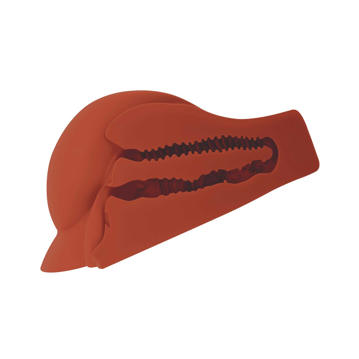 Con un peso di oltre 5 kg, il massiccio busto si adagia saldamente e in modo antiscivolo su qualsiasi superficie liscia e può anche essere penetrato a mani libere. I tunnel del piacere sono collegati tra loro per una facile pulizia.