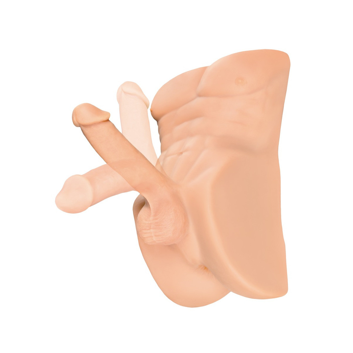Torso maschile Perfect Ride di PDX Plus con pene mobile a tutto tondo, testicoli sporgenti e invitante apertura dell'ano. Il petto muscoloso e gli addominali scolpiti sono caratterizzati dal nuovo design EZ Bang con fianchi più alti per una guida ancora più confortevole. E l'apertura dell'ano, anch'essa posizionata più in alto, è ora all'angolo perfetto per facilitare l'accesso e la penetrazione. Il canale del piacere stretto ha una consistenza eccitante e variegata per una sensazione anale realistica all'interno.