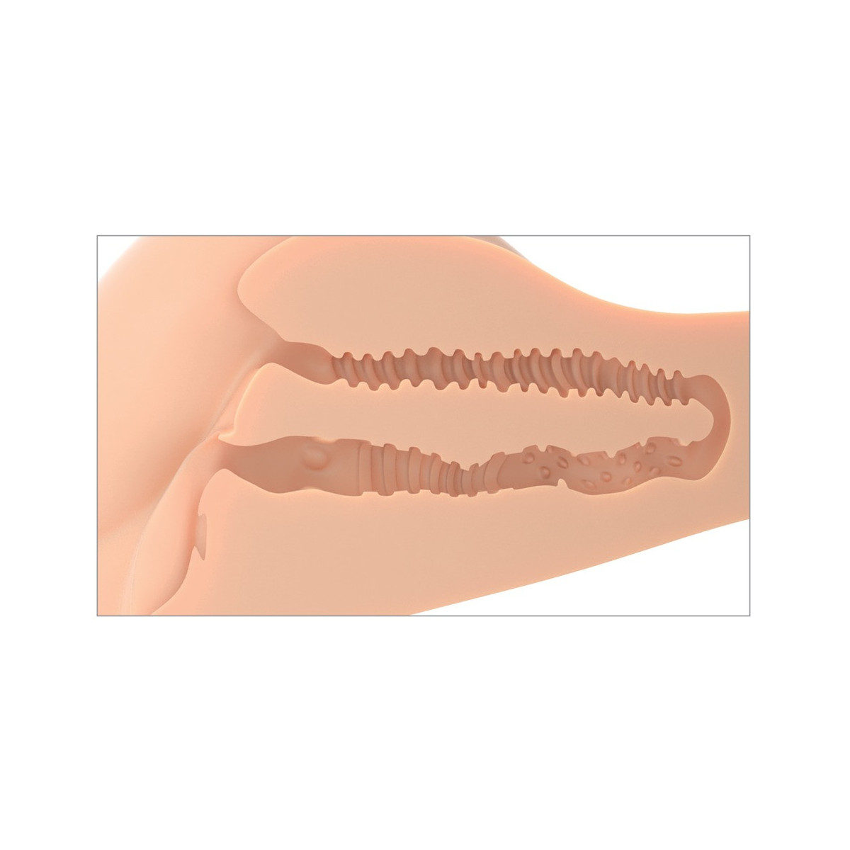 Masturbatore a busto 360° Banger di PDX Plus con invitante apertura della vagina e dell'ano. Riproduzione fedele al vero, con natiche abbondanti e attacco per gambe e pancia. Può essere girato e posizionato in diverse posizioni (ad esempio missionario, pecorina, cowgirl) e praticamente penetrato da tutti i lati. I due canali del piacere, stretti ed elastici, sono strutturati in modo elaborato all'interno per un massaggio intensivo.