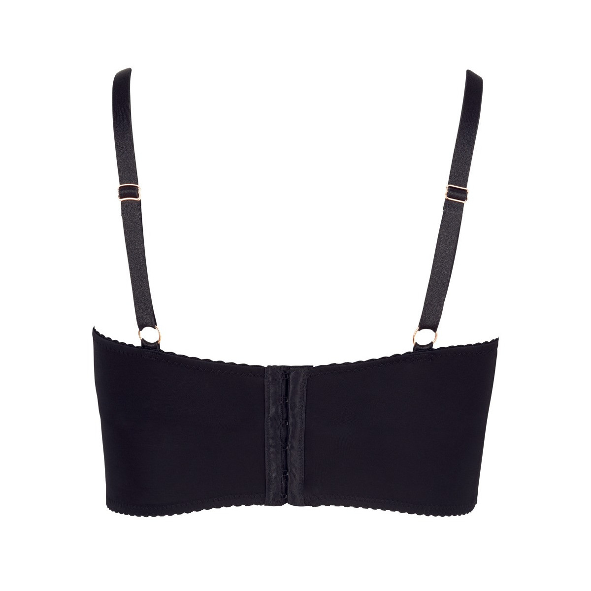 Reggiseno longline con coppe con ferretto leggermente foderato. Le sofisticate fasce per le coppe e le spalline sono regolabili per una perfetta vestibilità. Nero, con dettagli in oro rosa. Materiale opaco ed elastico