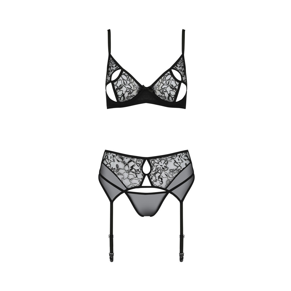 Passion Primula - Set Intimo, Taglia L/XL, Trio Provocante, Reggicalze, Reggiseno, Perizoma