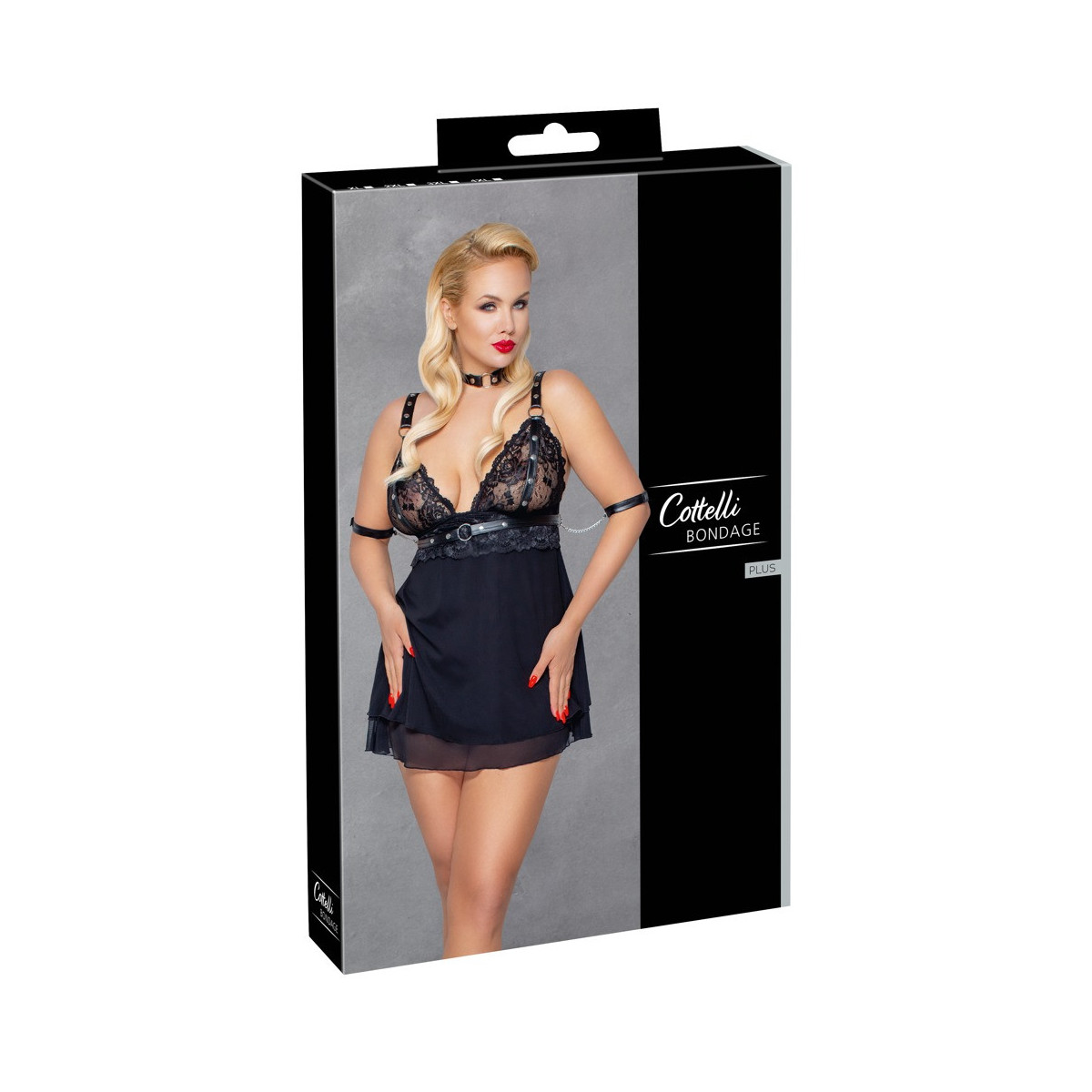 Cottelli - Babydoll Bondage, Taglia 3XL, Nero, Pizzo, Catene