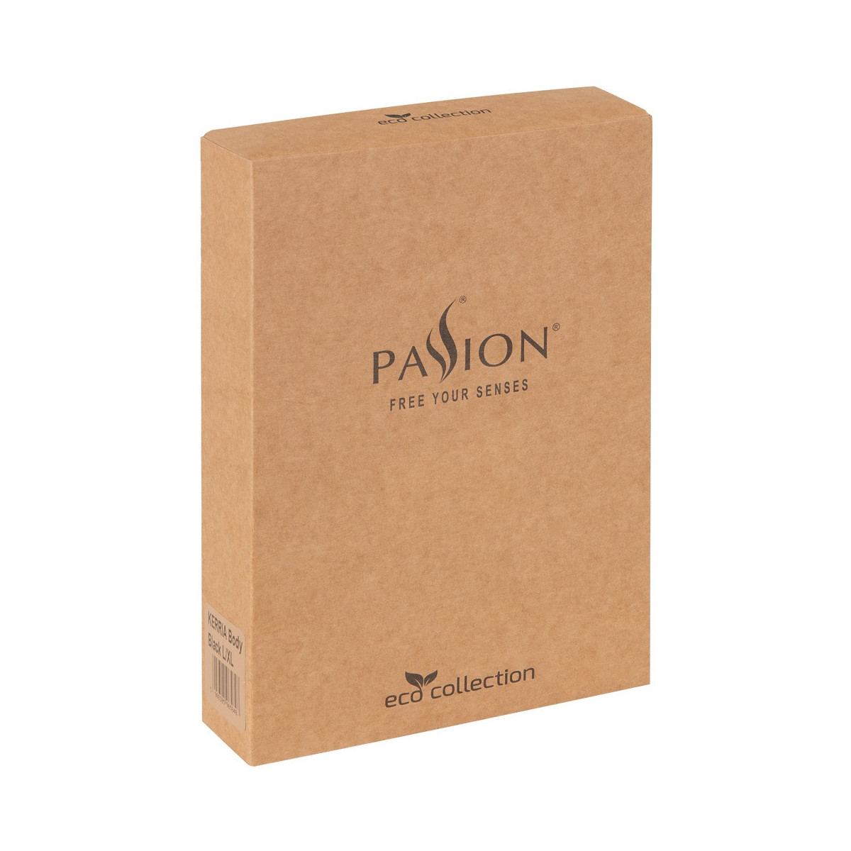 Chemise corta babydoll Kerria della Collezione Eco di Passion, incluso perizoma rio abbinato. Entrambi fatti di fine powernet elastico mescolato con un bel pizzo. Il babydoll svasato, arioso e delicato è realizzato con un reggiseno in pizzo le cui spalline si incrociano in un anello sulla schiena. Le cinghie sono regolabili per una vestibilità perfetta. Il riostring con pizzo davanti ha solo strette bande elastiche ai lati.