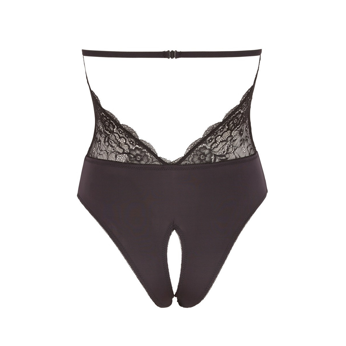 Questo body nero di Cottelli LINGERIE, con la pratica chiusura a clip sulla schiena, affascina con un top in pizzo fine e tenta con un cavallo aperto.
