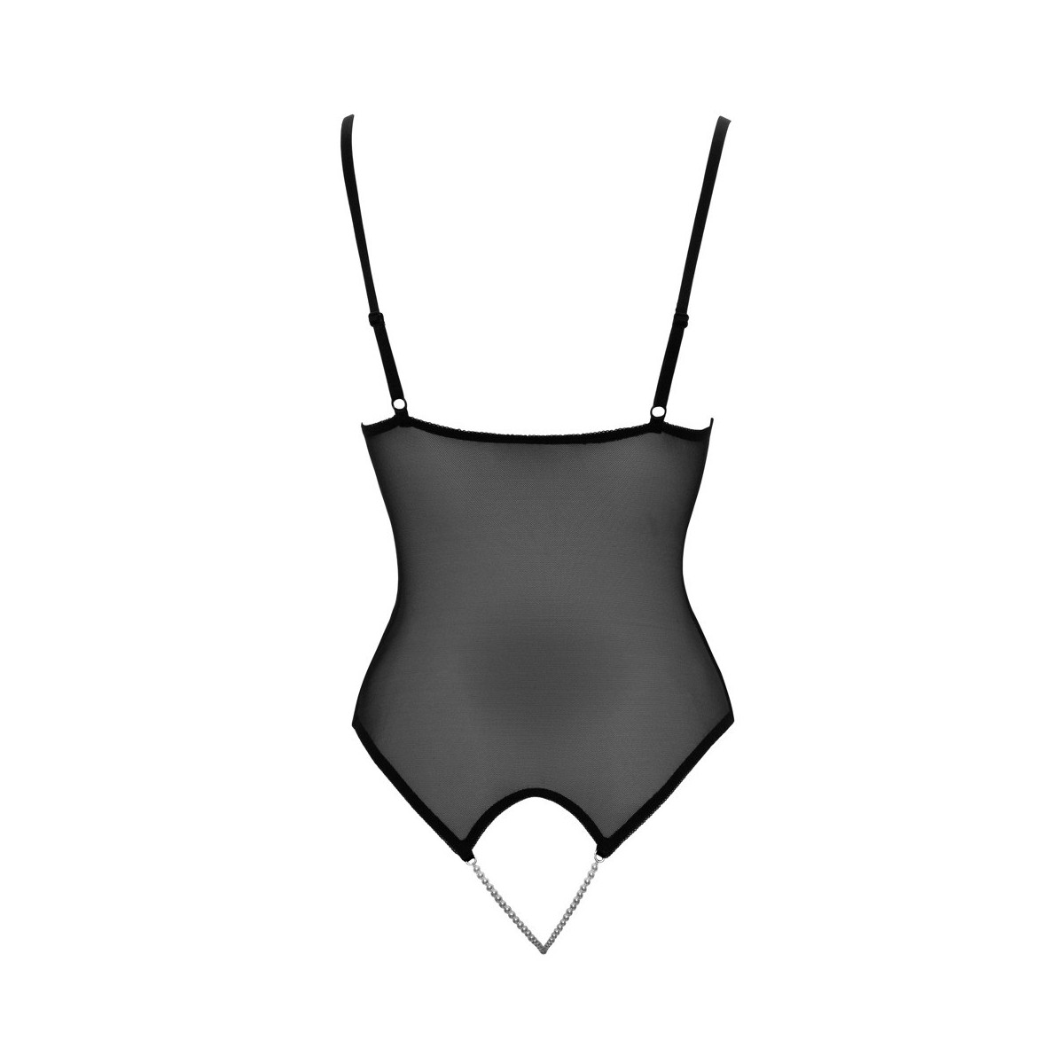Ouvert corpo mozzafiato con coppe a fessura e stimolanti collane di perle al cavallo. Realizzato in Powernet semitrasparente con pizzo floreale. Cinghie regolabili.