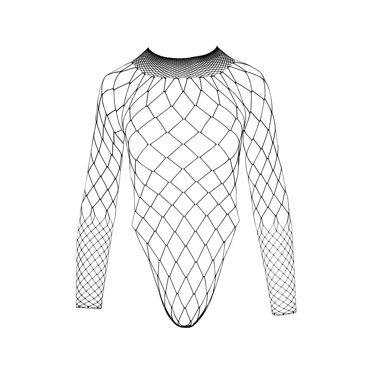 Il corpo è fatto di una maglia molto grossolana ed elastica, che permette di avere una visione mozzafiato e rivela anche il cavallo in modo eccitante. Il collare e le braccia sono più aderenti. Con ampio taglio nella parte posteriore e scollatura extra alta della gamba.