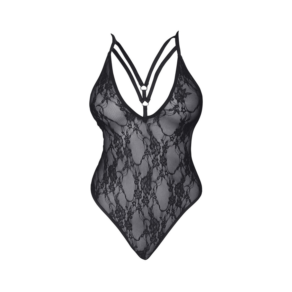 Cottelli Lingerie - Body Nero Trasparente, Taglia M, Pizzo Nero, Provocante