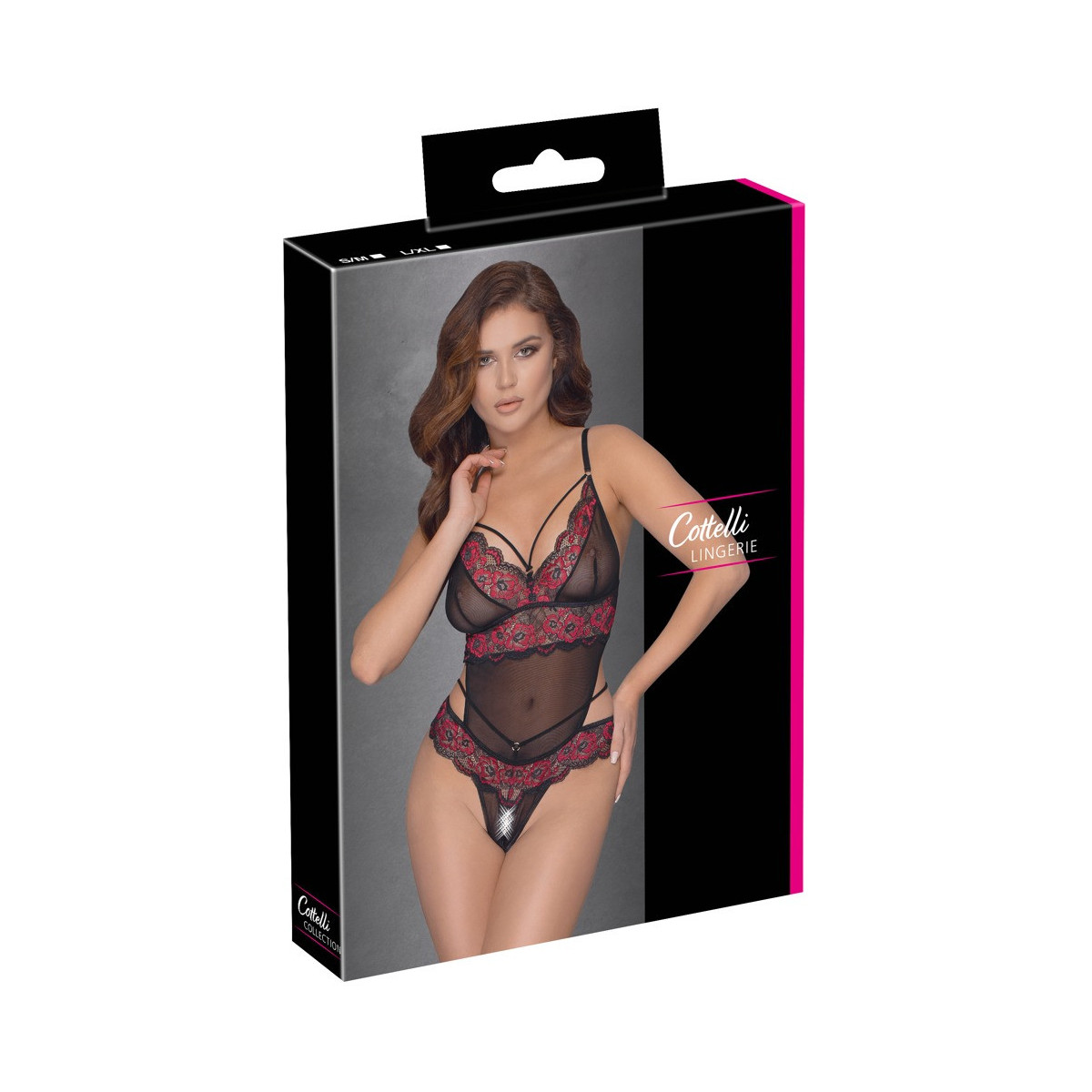 Cottelli Lingerie - Body Trasparente, Taglia S/M, Pizzo Floreale, Sensuale
