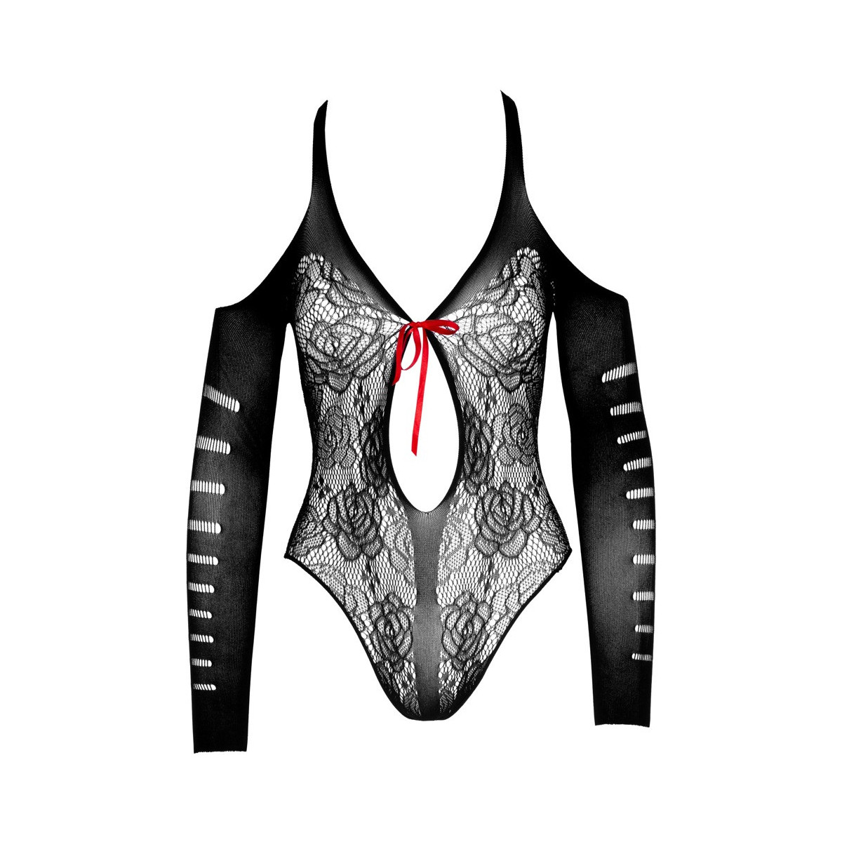 NoXqse - Body Nero Trasparente con Zip, Taglia S-L, Pizzo, Seducente
