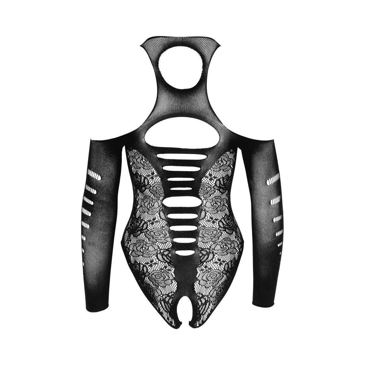 Body ouvert morbido e carezzevole di NO:XQSE in un seducente look di pizzo. Con maniche a ¾ e tagli sulle spalle. Taglio basso sul davanti - solo un occhiello rosso a sgancio rapido tiene insieme i frontali. Ritagli più eccitanti sul retro dal collo al fondo. Realizzato senza cuciture e altamente elastico per il più piacevole comfort d'uso.