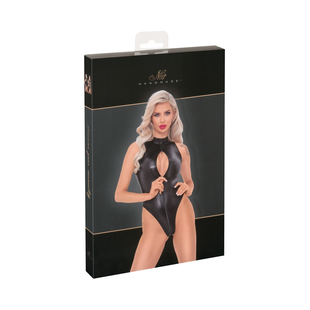 Body aderente di Noir in pelle di serpente opaca e scintillante, che si adatta come una seconda pelle. Morbido ed elastico per il massimo comfort. Le aperture extra-alte sulle gambe mettono in risalto il sedere e le gambe in modo eccitante. Pratica ed erotica allo stesso tempo è la cerniera metallica a 3 vie che va dal piccolo colletto al cavallo fino al fondo: può essere aperta e chiusa in molti modi.