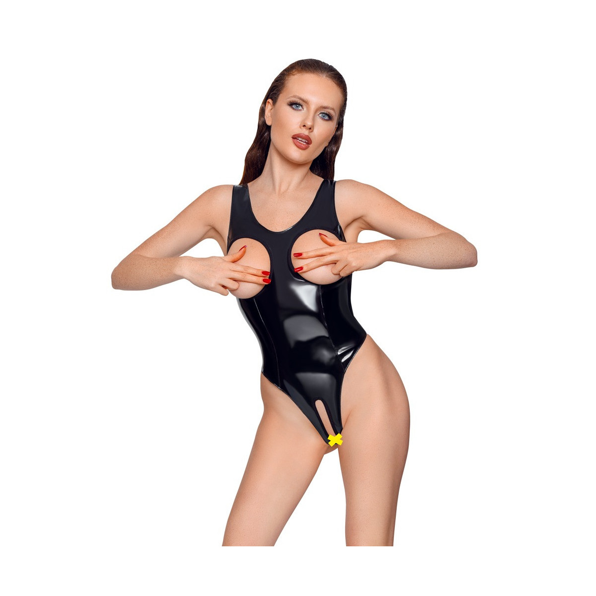 Black Level - Body Nero con Seno a Vista, Taglia L, Senza Cavallo, Vernice Nera, Eccitante