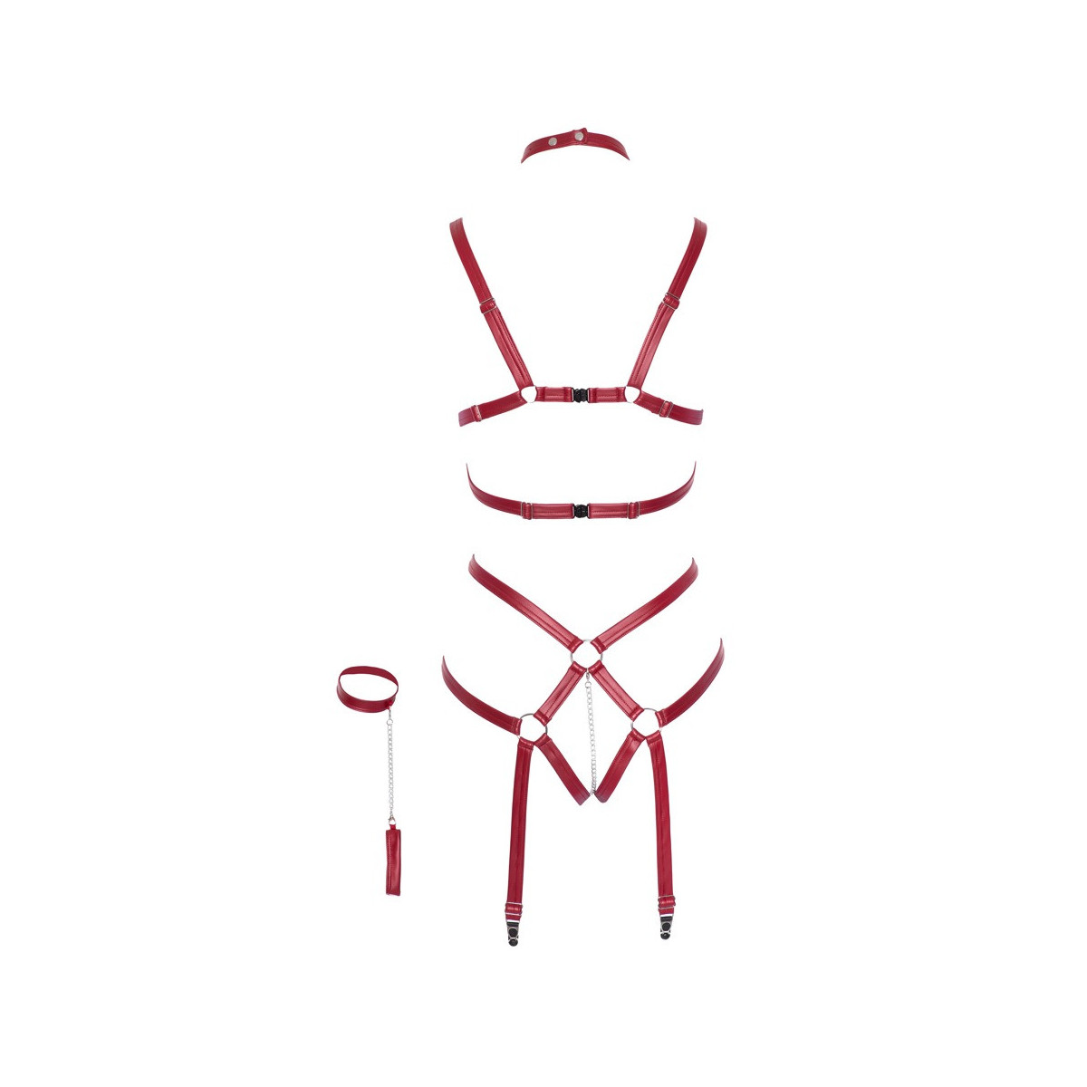 Bad Kitty Bondage Body - Rosso, Bretelle Regolabili, Seno e Vagina Scoperti, Taglia S/M