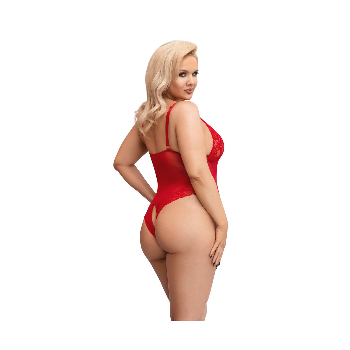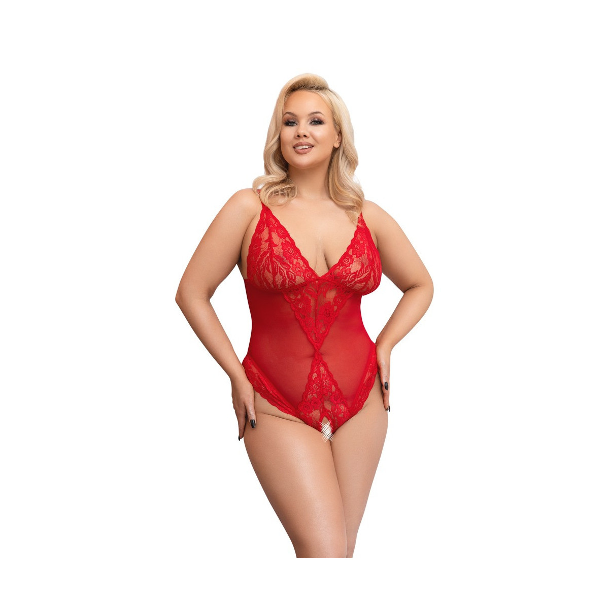 Cottelli Curves Crotchless Body Red - Trasparente, Inserti in Pizzo, Seducente, Taglia 3XL
