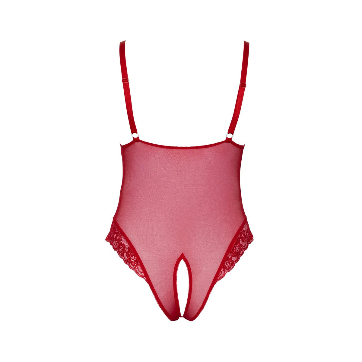 Body crotchless rosso-trasparente di Cottelli CURVES realizzato in fine powernet con coppe morbide e inserti di delicato pizzo. Elastico su tutta la superficie e morbidamente coccoloso per una vestibilità aderente con il massimo comfort. Aperta in modo invitante sul cavallo. Le larghe spalline sono regolabili in lunghezza per una perfetta vestibilità.