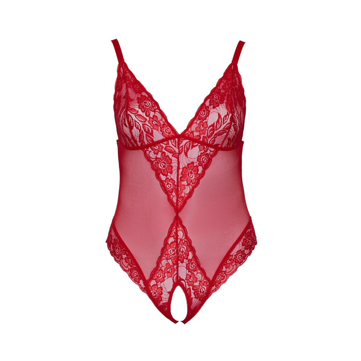 Body crotchless rosso-trasparente di Cottelli CURVES realizzato in fine powernet con coppe morbide e inserti di delicato pizzo. Elastico su tutta la superficie e morbidamente coccoloso per una vestibilità aderente con il massimo comfort. Aperta in modo invitante sul cavallo. Le larghe spalline sono regolabili in lunghezza per una perfetta vestibilità.