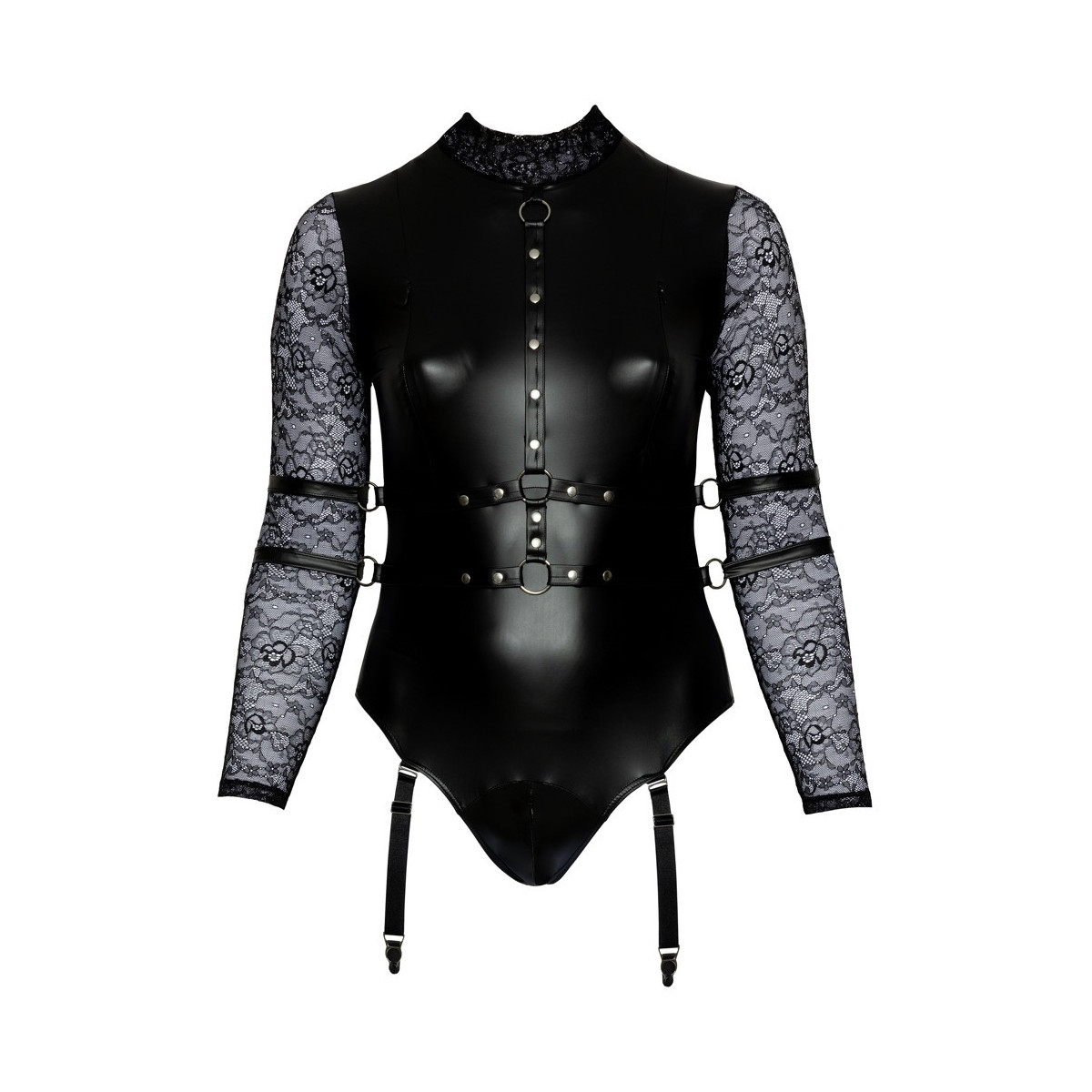 Cottelli Bondage Body - Nero, Look Opaco, Maniche Lunghe in Pizzo, Taglia XL