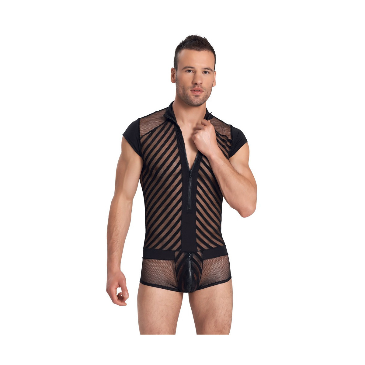 Svenjoyment Playsuit - Body da Uomo, Nero, Maniche Corte, Cerniera sul Davanti, Taglia M