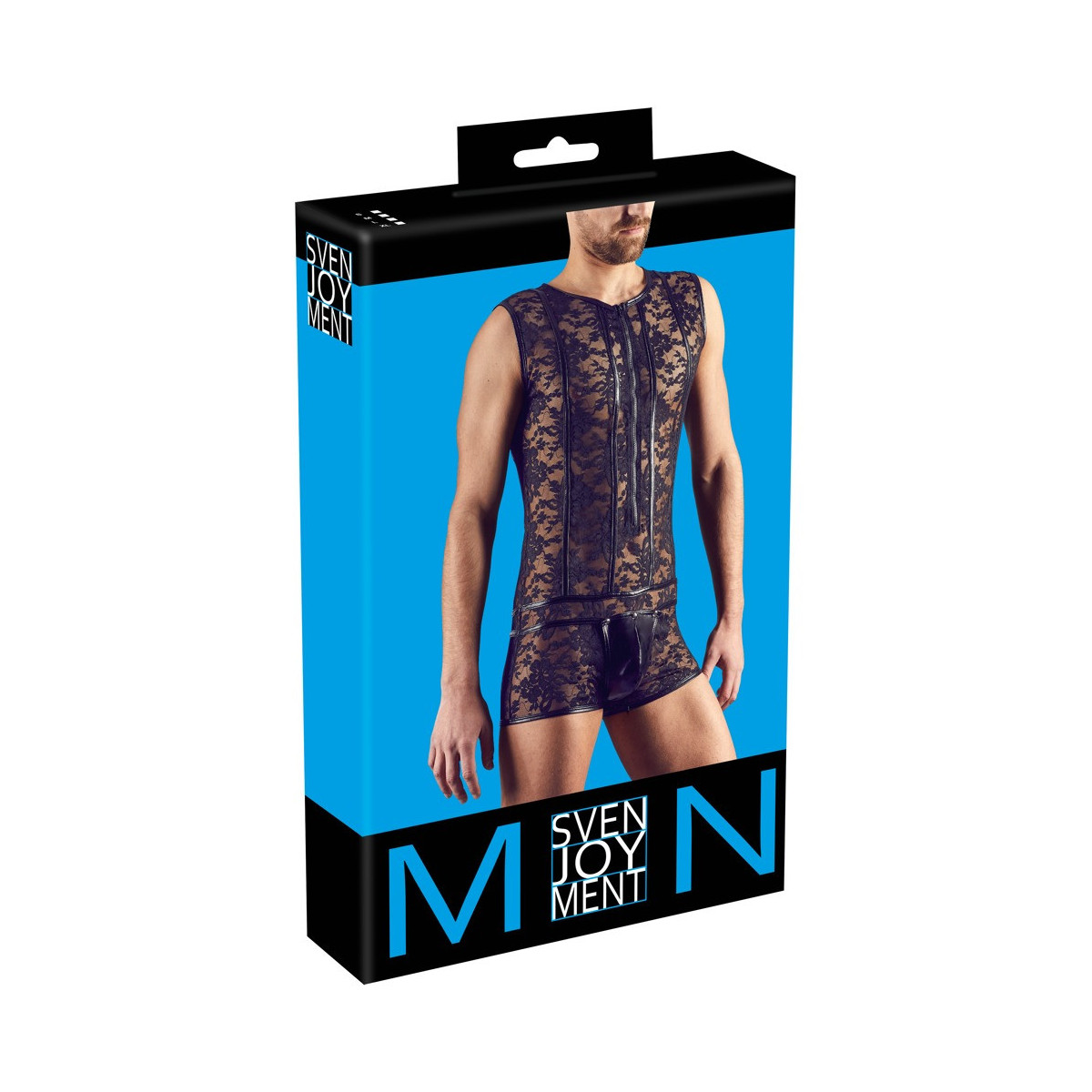 Svenjoyment Men's Body Lace - da Uomo, Nero, Pizzo a Fiori, Taglia XL