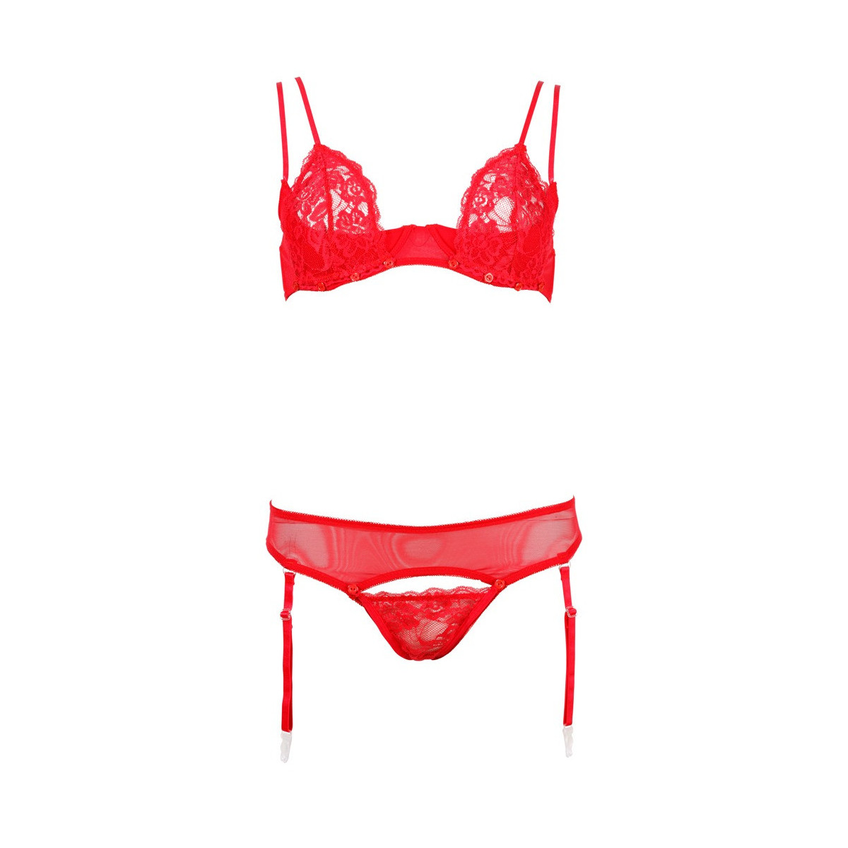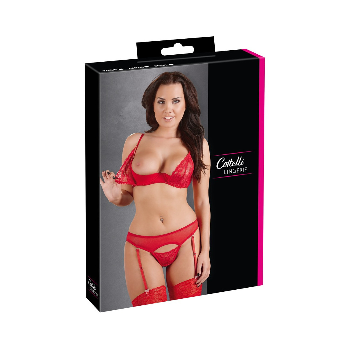 Cottelli Lingerie Bra and String - Completino Intimo, Rosso, Pizzo a Fiori, Taglia 80B/M