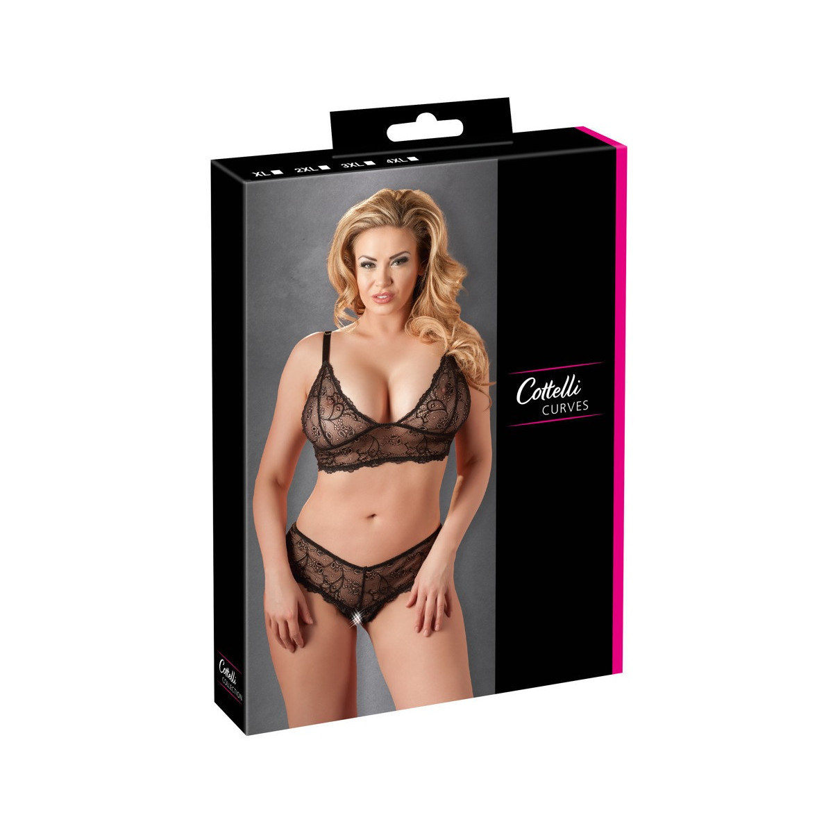 Cottelli Curves Bra and String - Completino Intimo, Nero, Pizzo Nero, Filigranato, Taglia XL