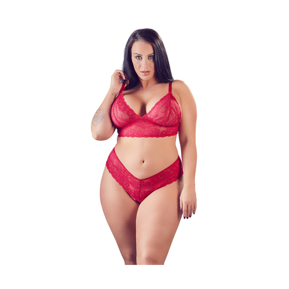 Cottelli Curves Bra and Briefs - Completino Intimo, Rosso, Pizzo in Filigrana, Taglia 3XL