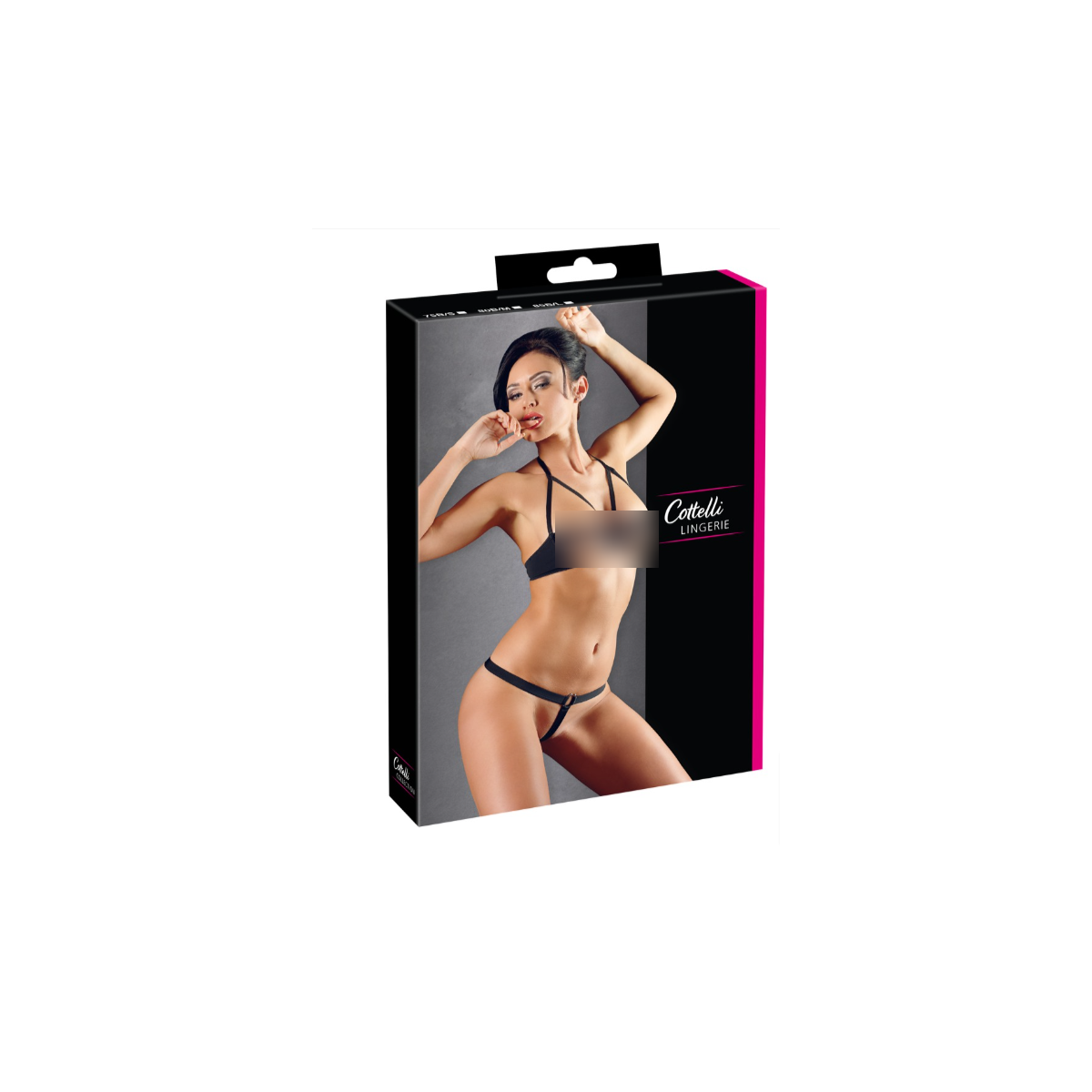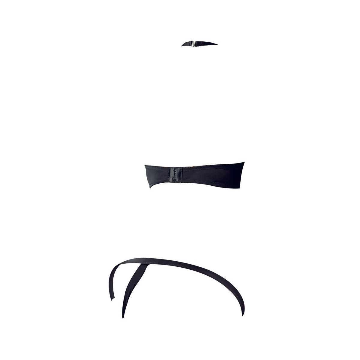 Questo set non lascia nessuna fantasia insoddisfatta! Il reggiseno con ferretto colpisce per le coppe completamente aperte e per gli anelli metallici a ferro di cavallo sui capezzoli. Con una pratica chiusura a gancio sul retro, il collo a mezzaluna alla moda può essere aperto comodamente con una chiusura a clip. Da non disprezzare è anche il perizoma appuntito con elastico in vita e anello di metallo davanti, perché solo una fascia morbida porta attraverso il cavallo. Con queste affascinanti viste il tuo tesoro non sarà in grado di tenere le dita ferme a lungo...